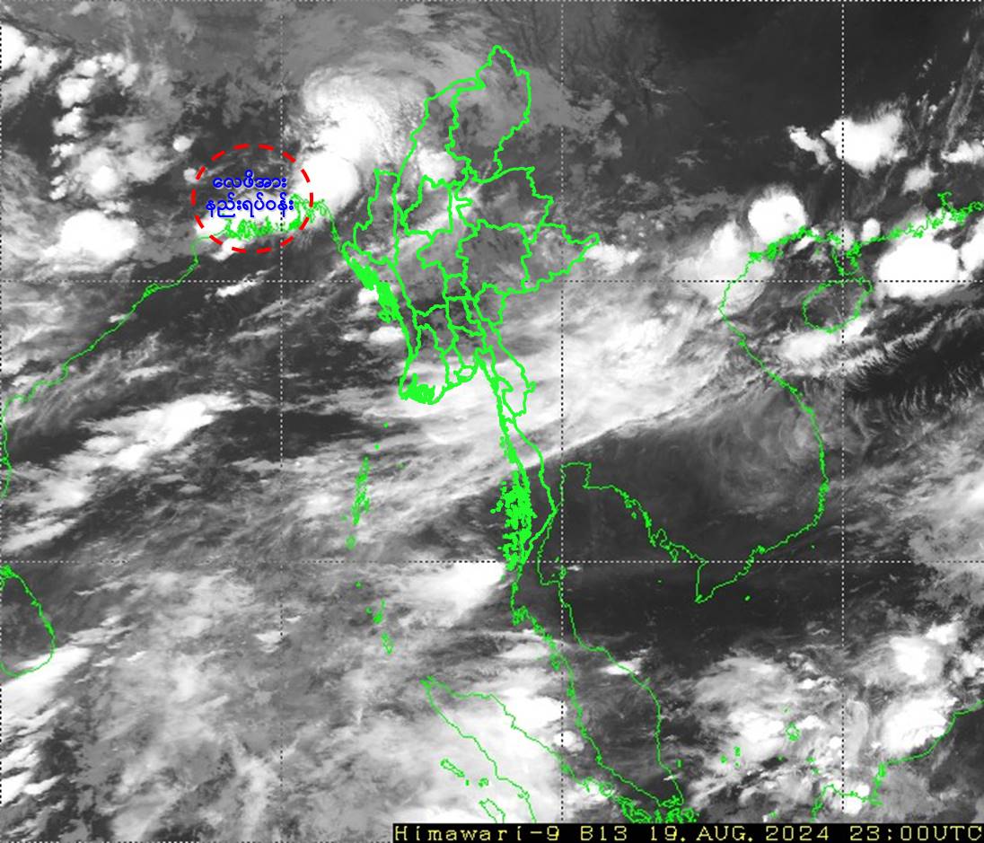 မိုးလေဝသနှင့်ဇလဗေဒ ညွှန်ကြားမှုဦးစီးဌာနက ယနေ့နံနက်ထုတ်ပြန်သည့် မိုးလေဝသသတင်းအရ   ယနေ့မြန်မာစံတော်ချိန် (၀၅:၃၀) နာရီအချိန် တိုင်းထွာချက်များအရ ဘင်္ဂလားဒေ့ရှ် နိုင်ငံတောင်ပိုင်းတွင် ဖြစ်ပေါ်နေသော လေဖိအားနည်းရပ်ဝန်း (Low Pressure Area) သည် အိန္ဒိယနိုင်ငံ၊ အနောက်ဘင်္ဂလား ပြည်နယ်နှင့် ယင်းနှင့်ဆက်စပ်လျက်ရှိသော ဘင်္ဂလားဒေ့ရှ်နိုင်ငံတို့တွင် ဆက်လက်တည်ရှိနေသည်။ အဆိုပါ လေဖိအားနည်း ရပ်ဝန်းသည် အနောက်-အနောက်မြောက်ဘက်သို့ ရွေ့လျားနိုင်ပြီး၊ အိန္ဒိယနိုင်ငံ၊ အနောက်ဘင်္ဂလားပြည်နယ်နှင့် ဂျက်ခမ်းပြည်နယ်တို့ကို ဖြတ်ကျော်နိုင်သည်ဟု ခန့်မှန်းရသည်။ ကပ္ပလီပင်လယ်ပြင်နှင့် ဘင်္ဂလားပင်လယ်အော်တောင်ပိုင်းတို့တွင် မုတ်သုံလေအားအနည်းငယ်မှ အားအသင့်အတင့်ရှိနေပြီး၊ ကျန်ဘင်္ဂလားပင်လယ်အော်တွင် မုတ်သုံလေ အားအသင့်အတင့် ရှိနေသည်။