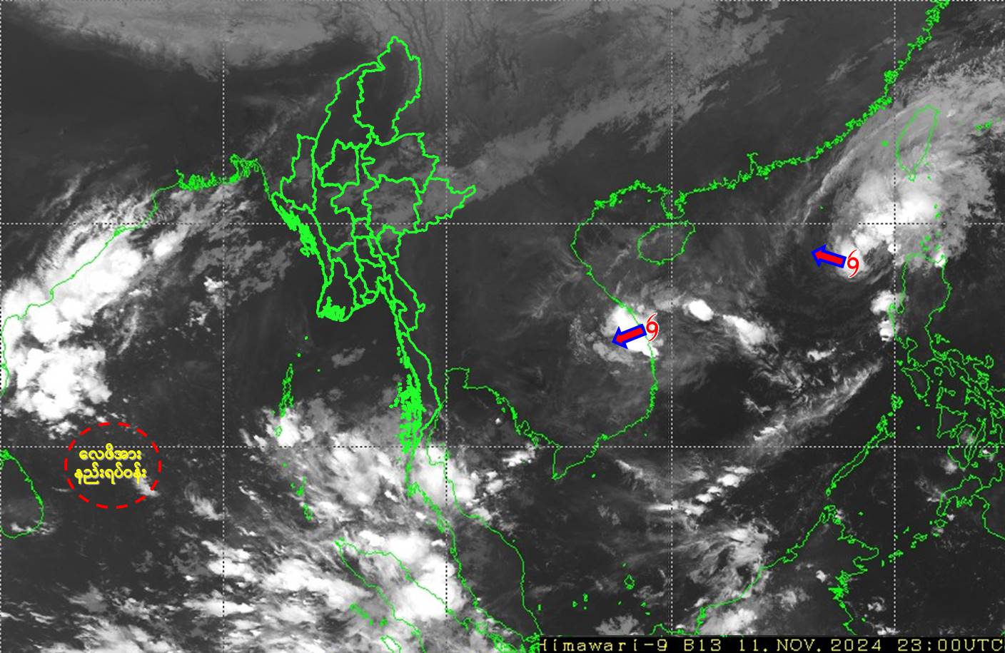 ယနေ့မြန်မာစံတော်ချိန် (၀၅:၃၀) နာရီ အချိန်တိုင်းထွာချက်များအရ တောင်တရုတ် ပင်လယ်ပြင်တွင် ဖြစ်ပေါ်နေသော အပူပိုင်းမုန်တိုင်း “ရင်ရှင်း” (YINXING) သည် တောင်-အနောက်တောင်ဘက်သို့ ဖြည်းညှင်းစွာ ဆက်လက်ရွေ့လျားပြီး၊ နောက် (၁၂) နာရီအတွင်း ဗီယက်နမ်နိုင်ငံ အလယ်ပိုင်းကမ်းခြေသို့ ရောက်ရှိနိုင်ကာ၊ တစ်ဖြည်းဖြည်းအားလျော့သွားမည်ဟု ခန့်မှန်းရသည်။