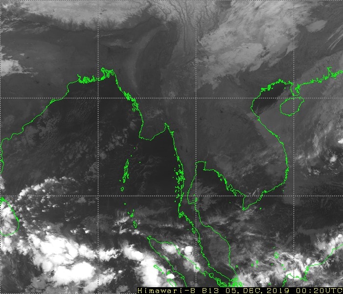 ဘင်္ဂလားပင်လယ်အော်အ‌ခြေအနေ။ ကပ္ပလီပင်လယ်ပြင်နှင့် ဘင်္ဂလားပင်လယ်အော်တောင်ပိုင်းတို့တွင် တိမ်အသင့်အတင့်မှ တိမ်ထူထပ်နေပြီး၊ ကျန်ဘင်္ဂလား ပင်လယ်အော်တွင် တိမ်အနည်းငယ် ဖြစ်ထွန်းနေပါသည်။