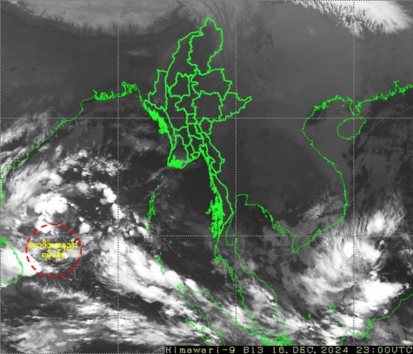 မိုးလေဝသနှင့်ဇလဗေဒ ညွှန်ကြားမှုဦးစီးဌာနက ယနေ့နံနက် ၇ နာရီ ထုတ်ပြန်သည့် မိုးလေဝသ သတင်းအရ ဘင်္ဂလားပင်လယ်အော်တောင်ပိုင်းတွင် ဖြစ်ပေါ်နေသော လေဖိအားနည်းရပ်ဝန်း (Low Pressure Area) သည် ဘင်္ဂလားပင်လယ်အော်အနောက်တောင်ပိုင်းသို့ ရောက်ရှိခဲ့ပြီး ဆက်လက်တည်ရှိနေသည်။ အဆိုပါ လေဖိအားနည်း ရပ်ဝန်းသည် ပိုမိုအားကောင်းလာနိုင်ပြီး၊ အနောက်- အနောက်မြောက်ဘက်သို့ ရွေ့လျားနိုင်ကာ နောက် ၂ ရက်အတွင်း အိန္ဒိယနိုင်ငံ၊ တမီးလ်နာဒူးကမ်းခြေသို့ ရောက်ရှိနိုင်သည်ဟု ခန့်မှန်းရသည်၊၊ ကပ္ပလီပင်လယ်ပြင်မြောက်ပိုင်းနှင့် ဘင်္ဂလားပင်လယ်အော်မြောက်ပိုင်းတို့တွင် တိမ်အနည်းငယ် ဖြစ်ထွန်းနေပြီး၊ ကပ္ပလီပင်လယ်ပြင် တောင်ပိုင်း နှင့် ကျန်ဘင်္ဂလားပင်လယ်အော်တို့တွင် တိမ်အသင့်အတင့်မှ တိမ်ထူထပ်နေသည်။