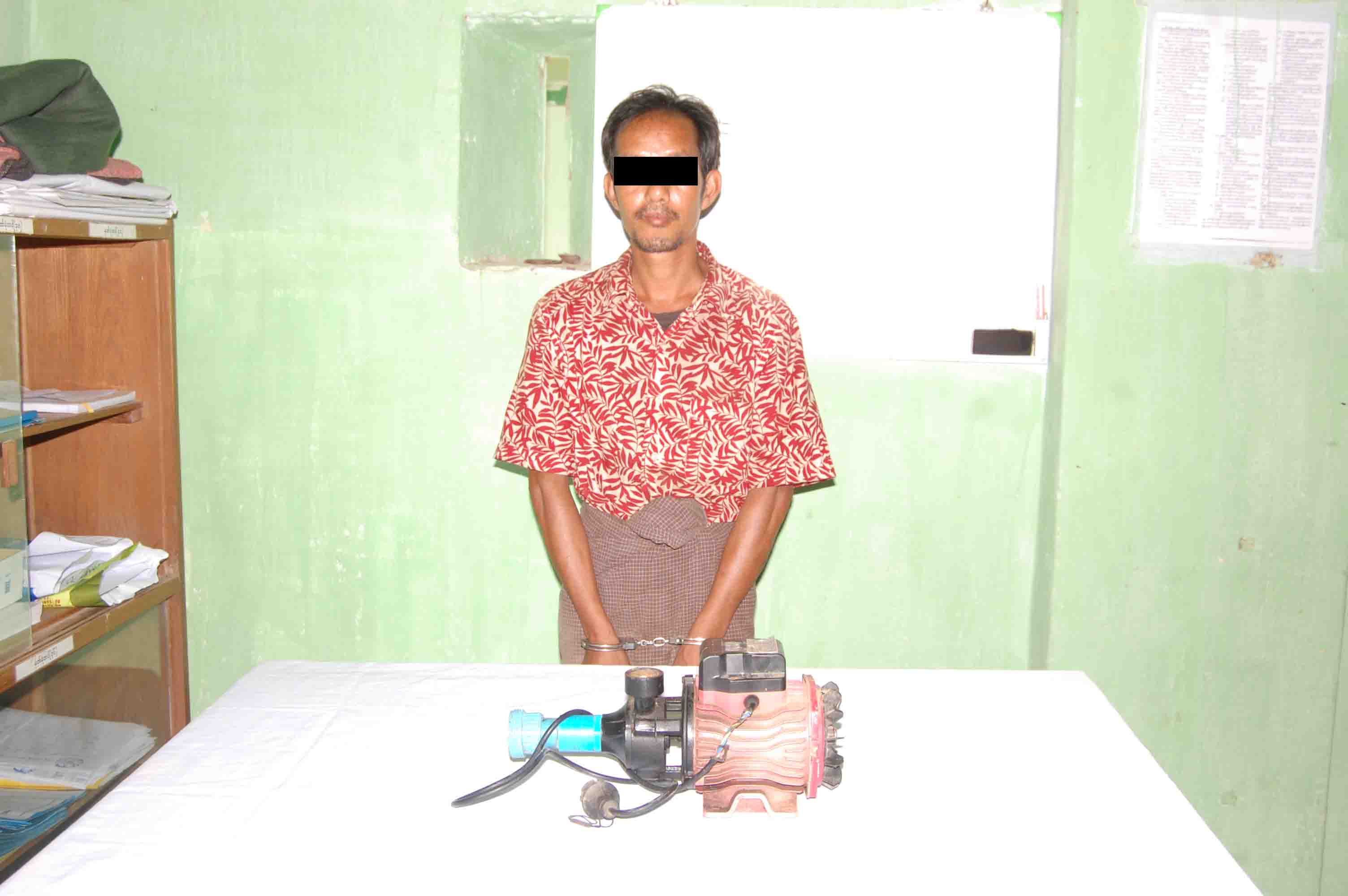 ထို့နောက် ကျေးရွာအတွင်းလိုက်လံစုံစမ်းရာ တစ်ရွာတည်းနေ နိုင်ဖူး(၄၂)နှစ်အား ဘုရားဝန်းအတွင်းမှ ပျောက်ဆုံးသွားသော ရေမော်တာကို သယ်ဆောင်ပြီး ရောင်းချရန် သွားလာနေသည်ကို တွေ့ရှိရ၍ ဥပဒေအရ အရေးယူဆောင် ရွက်ပေးရန် ဇိနမာန်အောင်ဘုရား (ဂေါပကအဖွဲ့ဝင်) ဦးရဲမြင့်အောင်(ခ)ကိုရဲမှ ယနေ့မွန်းတည့်(၁၂)နာရီက တံတားဦးမြို့မရဲစခန်းသို့ တရားလိုပြုလုပ် လာရောက်တိုင်တန်းသဖြင့် တံတားဦးမြို့မရဲစခန်းမှ အမှုဖွင့် အရေးယူဆောင်ရွက်ထားကြောင်း သိရှိရသည် ။