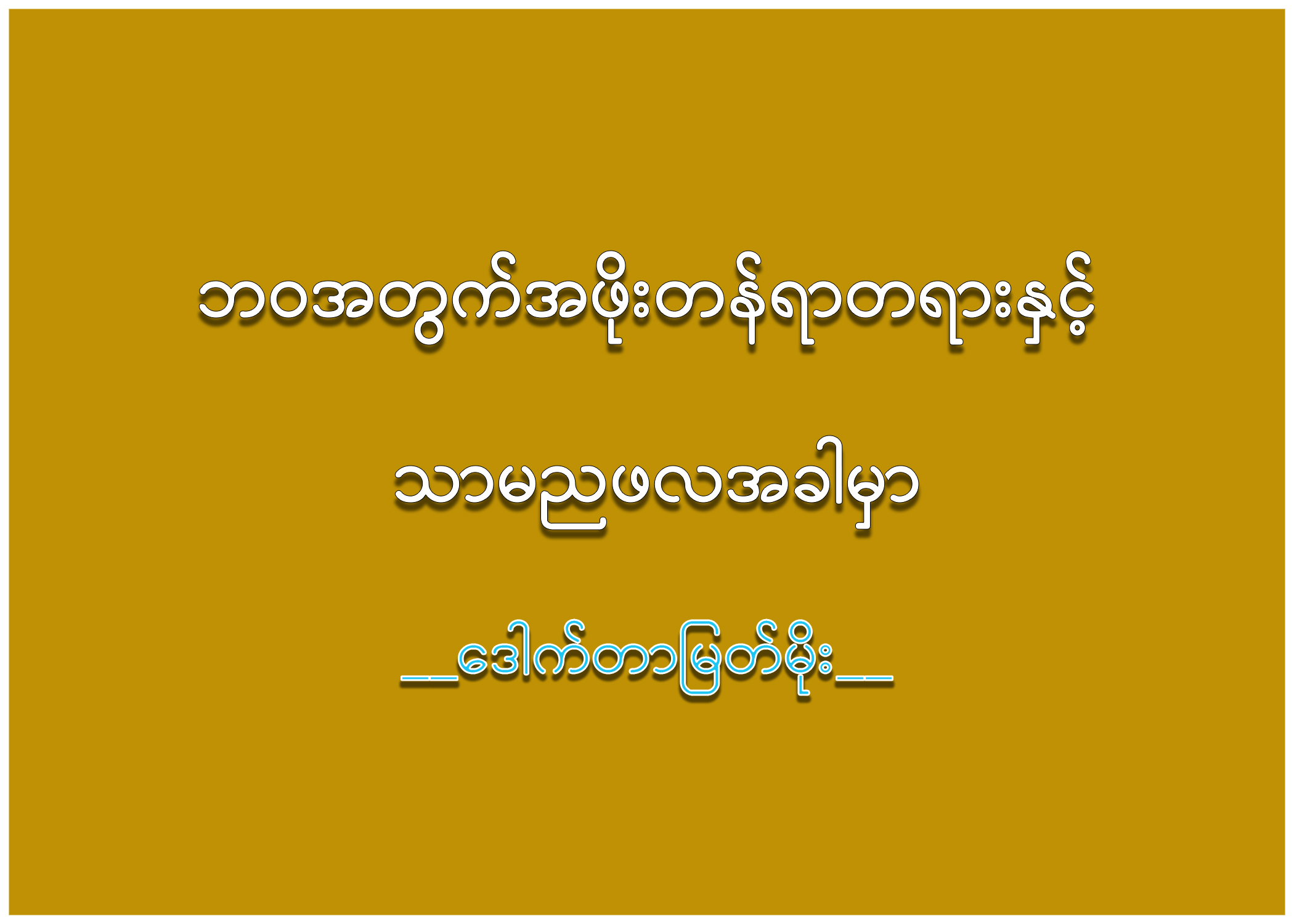အချုပ်အားဖြင့်တော့ ဘဝမှာယူတတ်လျှင် အမှားကိုပယ်၊ အမှန်ကိုယူနိုင်မည့် အဖိုးတန်ရာ တရားများစွာရှိပါသည်။ လောကမှာ လောဘကြီး တာလည်း မကောင်း၊ ဒေါသကြီးလွန်းတာလည်း မကောင်းပါ။ လောဘကို လောဘဖြစ်မှန်းမသိ၊ ဒေါသ ကိုဒေါသဖြစ်မှန်းမသိဖြစ်ရသော မောဟကြောင့် ဆိုလျှင် ပိုပြီးဆိုးရွားမှုများ တွေ့ကြုံနိုင်သည်ကို နားလည်ပြီးလည်း ဖြစ်ကြပါသည်။ လောဘ၊ ဒေါသ၊ မောဟအခြေခံ အကုသိုလ်ခြံရံ၍ တစ်ဦးအပေါ်တစ်ဦး အနိုင်မယူချင်ကြစေဘဲ တရားမျှတမှုကို အခြေခံ၍သာ အနိုင်ယူစေချင်ပါသည်။
