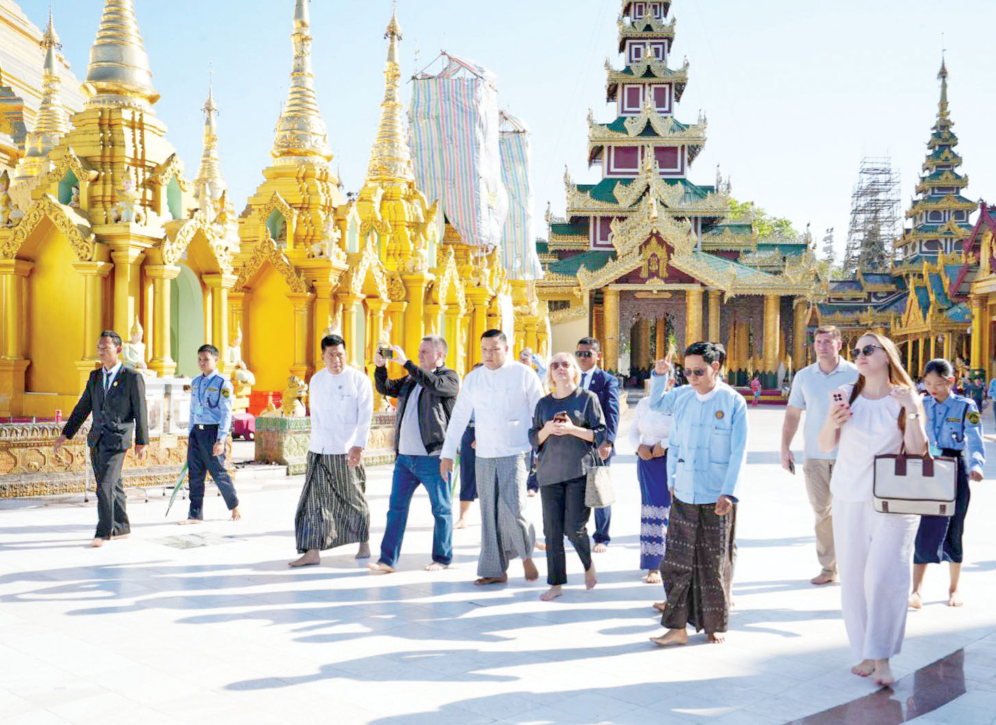 မြန်မာနိုင်ငံ၌ရောက်ရှိနေသည့် ဘယ်လာရုစ်သမ္မတနိုင်ငံမှ စက်မှုဝန်ကြီး H. E. Mr. Andrei KUZNIATSOU ၊ စိုက်ပျိုးရေးနှင့် စားနပ်ရိက္ခာဆိုင်ရာဝန်ကြီး H.E. Mr. Yury HORLAU ၊ ကျန်းမာရေးဝန်ကြီး H.E. Mr. Aliaksandr KHAJAYEU ၊ နိုင်ငံပိုင်အသေးစား စက်မှုလုပ်ငန်း “Bellegprom” ဥက္ကဋ္ဌ H.E. Ms. Nadzeya LAZAREVICH နှင့် ကိုယ်စားလှယ်အဖွဲ့သည် ရန်ကုန်မြို့ နိုင်ငံခြားရေးဝန်ကြီးဌာနမှ တာဝန်ရှိသူများနှင့်အတူ ယနေ့မွန်းလွဲပိုင်းတွင် ရွှေတိဂုံစေတီတော်မြတ်ကြီးသို့ ရောက်ရှိရာ ရန်ကုန်တိုင်းဒေသကြီး လူမှုရေးရာဝန်ကြီး ဦးဌေးအောင်နှင့် ဘဏ္ဍာတော်ထိန်း ဂေါပကအဖွဲ့များက ကြိုဆိုနှုတ်ဆက်ကြသည်။