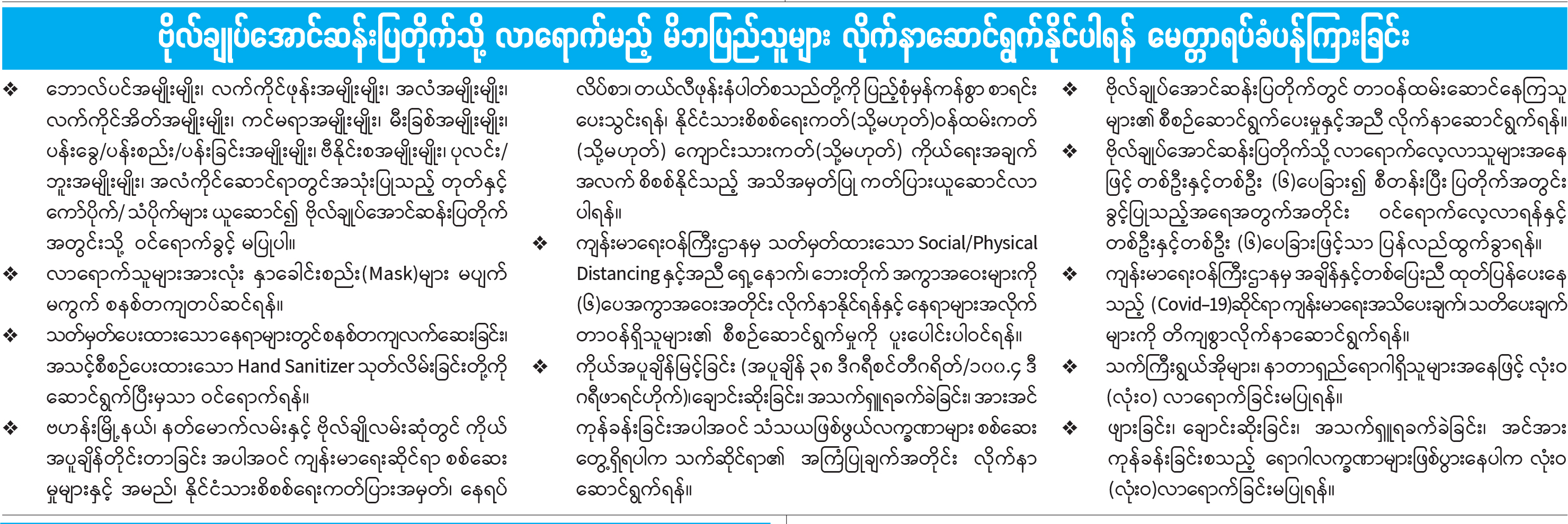 ဗိုလ်ချုပ်အောင်ဆန်းပြတိုက်သို့ လာရောက်မည့် မိဘပြည်သူများ လိုက်နာဆောင်ရွက်နိုင်ပါရန် မေတ္တာရပ်ခံပန်ကြားခြင်း
