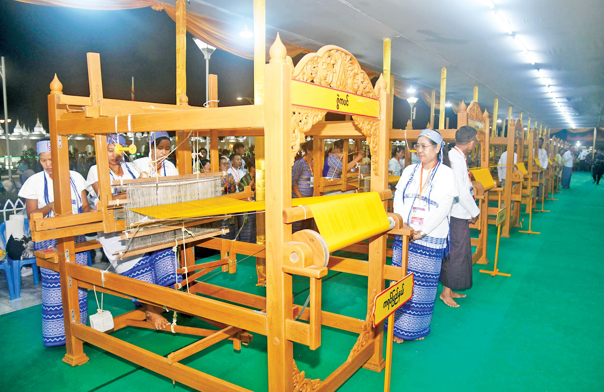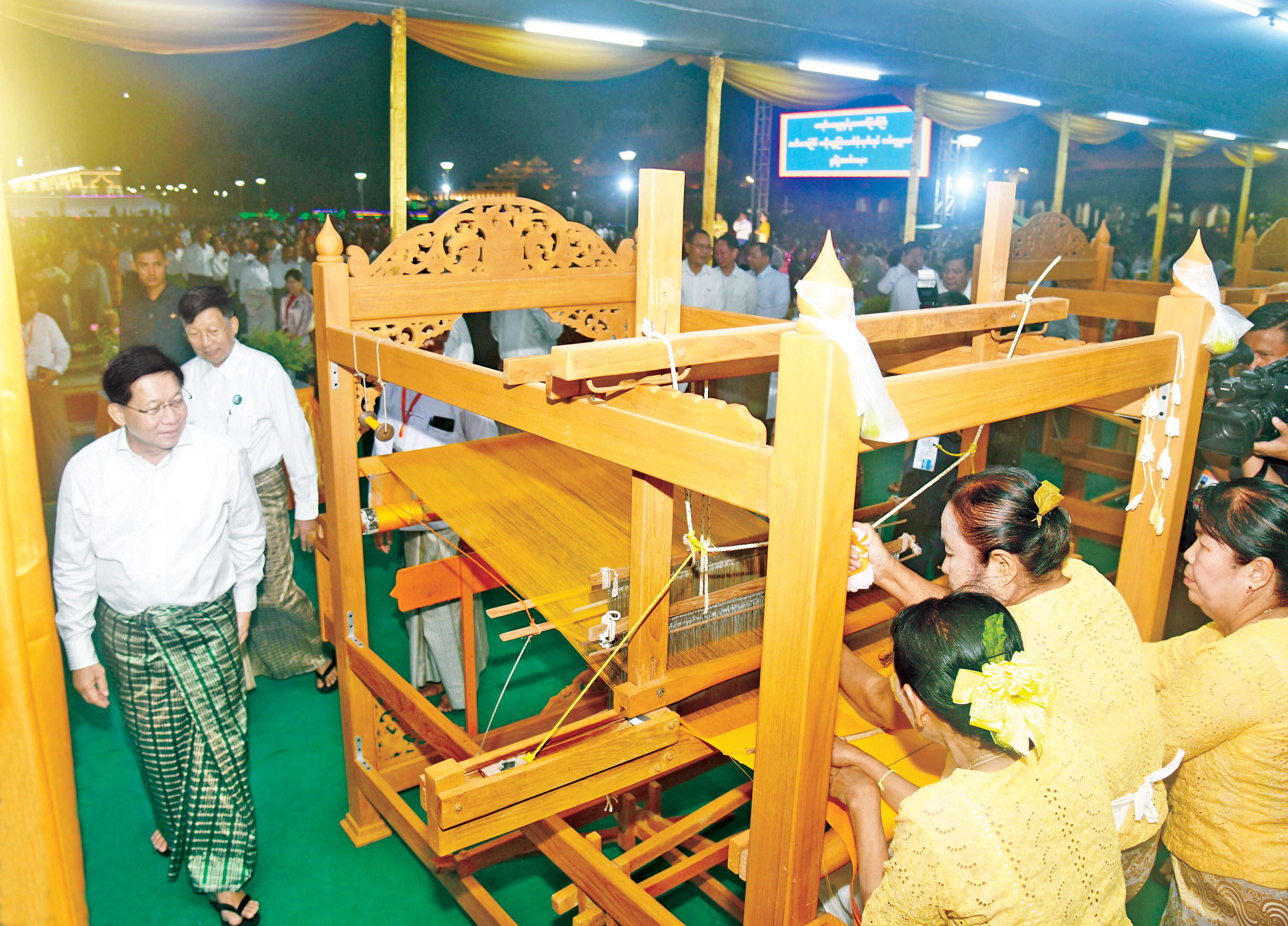 ထို့နောက် နိုင်ငံတော်ယာယီသမ္မတ နိုင်ငံတော်လုံခြုံရေးနှင့် အေးချမ်းသာယာ ရေးကော်မရှင်ဥက္ကဋ္ဌနှင့်ဇနီးနှင့် ဧည့်ပရိသတ်များသည် ရက္ကန်းစင်တော် ၁၅ ခုမှ ရက္ကန်း အဖွဲ့များ၏ မသိုးရွှေကြာ သင်္ကန်းရက်လုပ်နေမှုများကို ရက္ကန်းစင်တော်တစ်ခုချင်းစီ အလိုက် စိတ်ဝင်တစား လှည့်လည်ကြည့်ရှုအားပေးကြသည်။