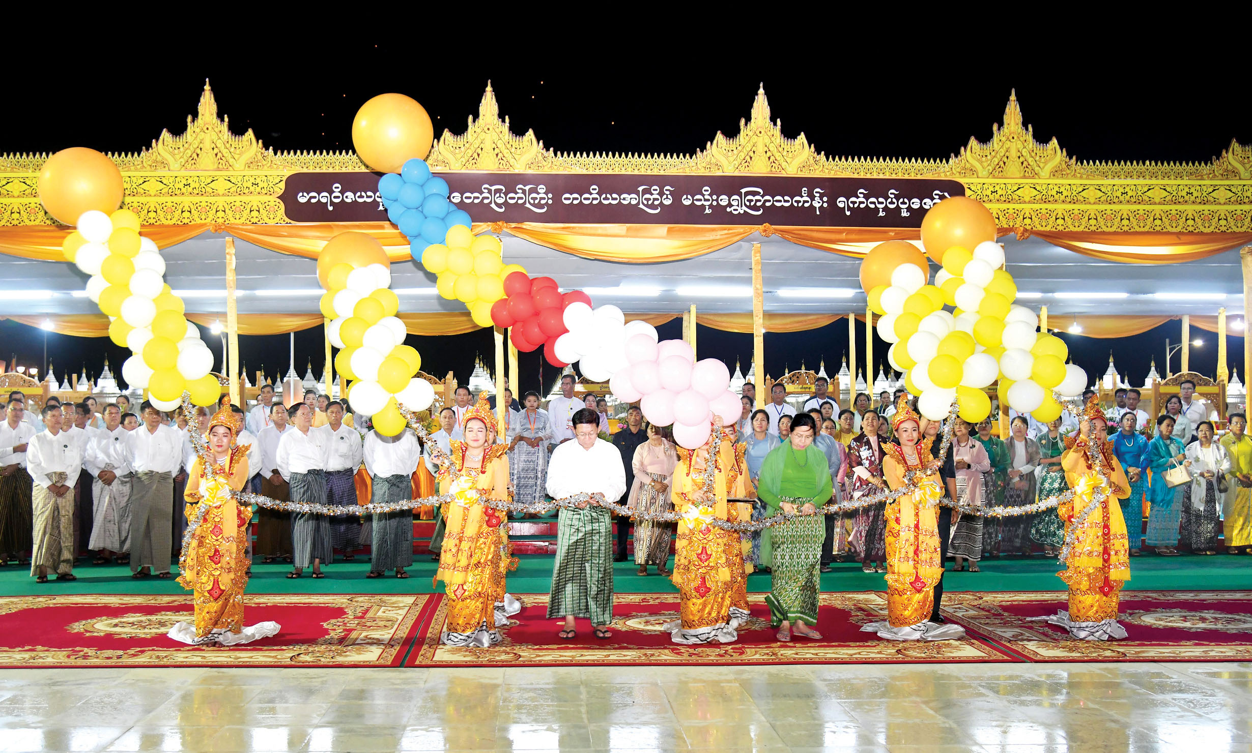 ထို့နောက် နိုင်ငံတော်ယာယီသမ္မတ နိုင်ငံတော်လုံခြုံရေးနှင့် အေးချမ်းသာယာ ရေးကော်မရှင်ဥက္ကဋ္ဌနှင့်ဇနီး တို့က ၂၀၂၅ ခုနှစ်၊ မာရဝိဇယဗုဒ္ဓရုပ်ပွားတော်မြတ်ကြီး တန်ဆောင်တိုင်ပွဲတော် မသိုးရွှေကြာသင်္ကန်းရက်လုပ်ပူဇော်ပွဲ ဖွင့်ပွဲအခမ်းအနားကို ဖဲကြိုး ဖြတ်၍ ဖွင့်လှစ်ပေးကြသည်။