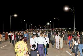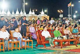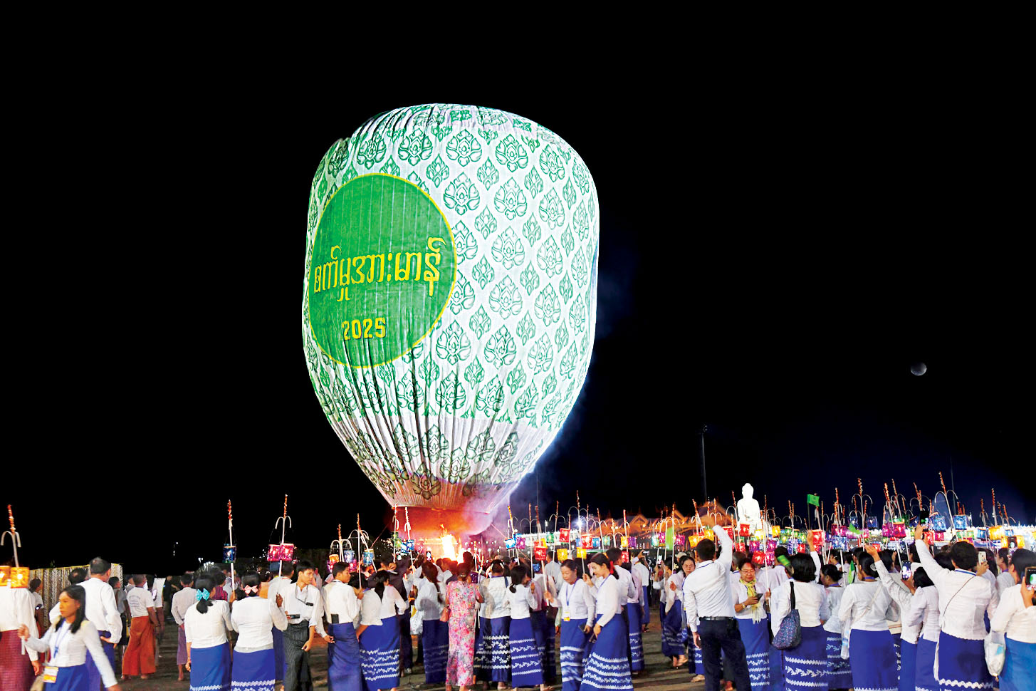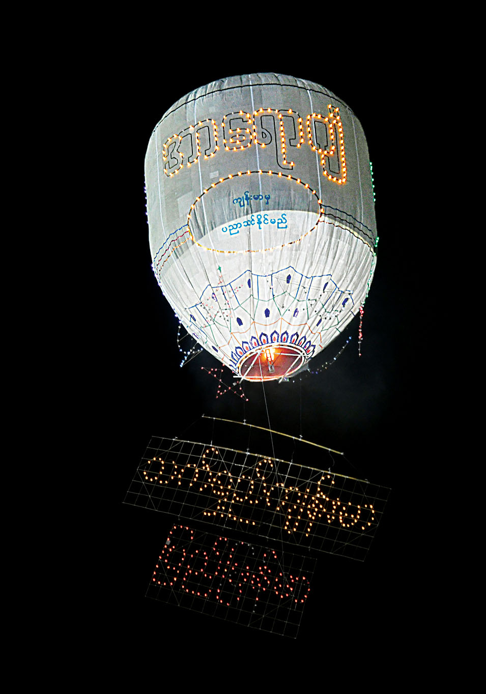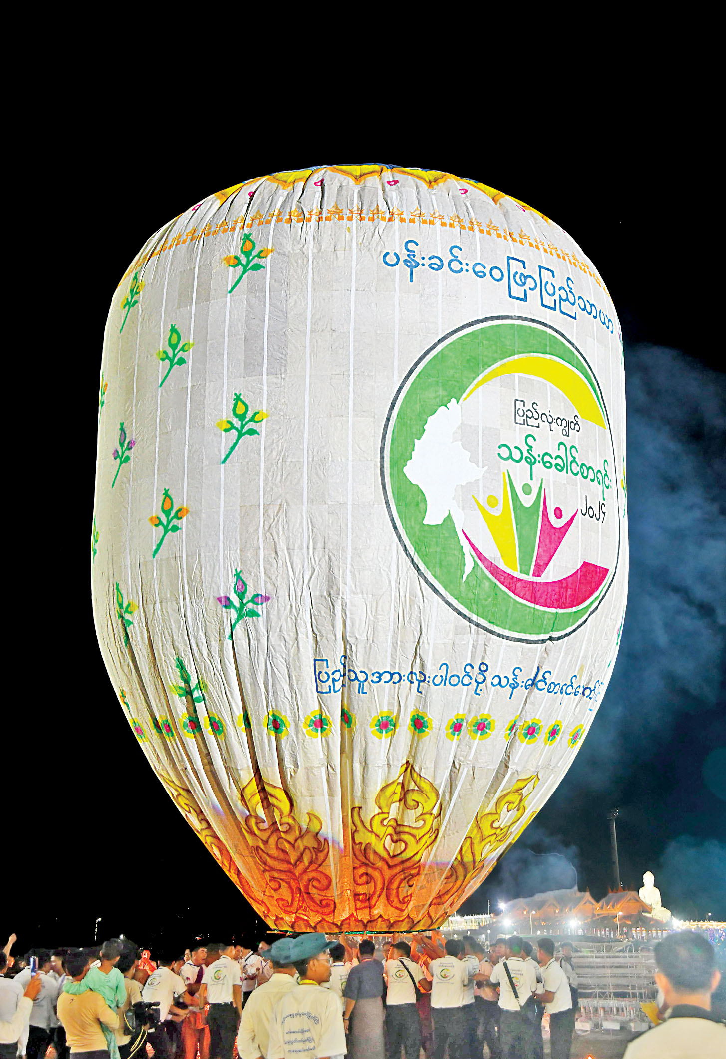 ယင်းနောက် နိုင်ငံတော်ယာယီသမ္မတ နိုင်ငံတော်လုံခြုံရေးနှင့်အေးချမ်းသာယာ ရေးကော်မရှင်ဥက္ကဋ္ဌနှင့်ဇနီး၊ အခမ်းအနား တက်ရောက်လာကြသူများသည် ညမီးကြီး မီးပုံးပျံများနှင့် စိန်နားပန်မီးပုံးပျံများ လွှတ်တင်မှုများကို မာရဝိဇယဗုဒ္ဓရုပ်ပွားတော်မြတ် ကြီး တန်ဆောင်တိုင်မီးထွန်းပွဲတော်သို့ လာရောက်ကြသည့် ဘုရားဖူးလာရဟန်းရှင်လူ ပြည်သူများနှင့်အတူ ကြည့်ရှုအားပေးကြသည်။