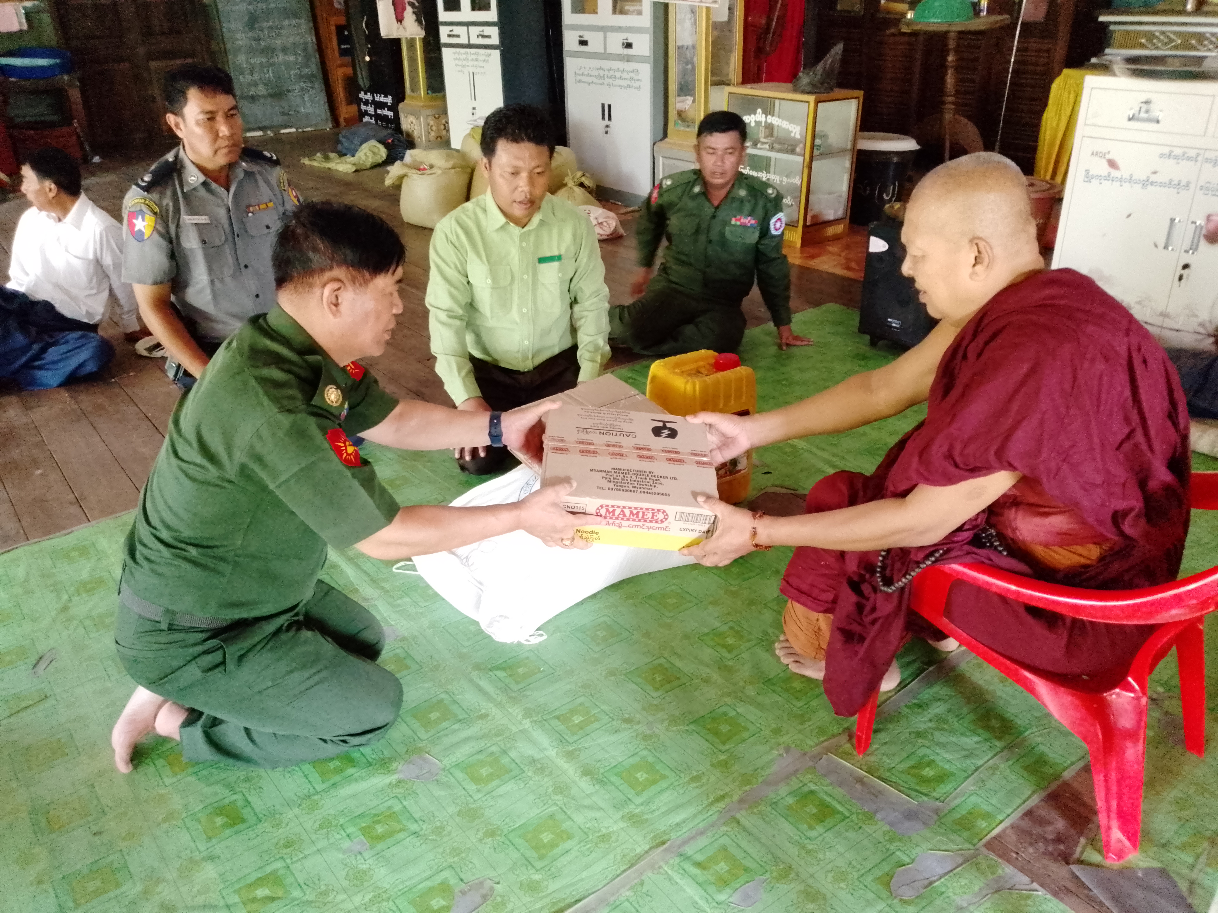 ထို့နောက် မြေပုံမြို့ပေါ်ရှိ လေဘေးခိုလှုံရာစခန်းဖွင့်လှစ်ခဲ့သည့် မြို့မကုသိနာရုံ ပရိယတ္တိစာသင်တိုက်သို့ သွားရောက်ကာ ကျောင်းထိုင်ဆရာတော် ဦးရာဇိန္ဒအား ဖူးမြော်ပြီး ဆန်၊ ဆီ၊ ခေါက်ဆွဲခြောက်များကိုလည်းကောင်း၊ တောင်ကျောင်း ပရိယတ္တိစာသင်တိုက်သို့ သွားရောက်၍ ကျောင်းထိုင်ဆရာတော် ဦးသိရောမဏိအား ဖူးမြော်ပြီး ဆန်၊ ဆီ၊ ခေါက်ဆွဲခြောက်များ ကို လည်းကောင်း လှူဒါန်းကာ ဆရာတော်များထံမှ ဩဝါဒခံယူခဲ့သည်။