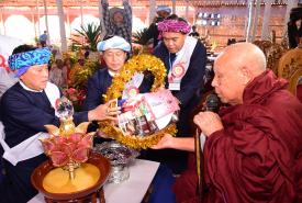 ထို့နောက် ဗိုလ်ပန္တကုန်းတော် မဟာဝံသ ဗုဒ္ဓဂယာစေတီတော်မြတ်ကြီး စိန်ဖူးတော်များကို နိုင်ငံတော် စီမံအုပ်ချုပ်ရေးကောင်စီအဖွဲ့ဝင် ဦးခွန်စံလွင်၊ ပြည်နယ်ဝန်ကြီးချုပ် ဦးအောင်ဇော်အေးတို့က ဆရာတော် သံတော်များထံ ဆက်ကပ်ပေးကြပြီး ရွှေထီးတော်နှင့် ဘုံအဆင့်တို့ကို ပြည်နယ်တရားလွတ်တော် တရားသူကြီးချုပ်၊ ပြည်နယ်ဝန်ကြီးများ၊ ပြည်နယ်ဥပဒေချုပ်၊ ပြည်နယ်အစိုးရအဖွဲ့ အတွင်းရေးမှူး၊ ပအိုဝ်းကိုယ်ပိုင်အုပ်ချုပ်ခွင့်ရဒေသ စီမံအုပ်ချုပ်ရေးအဖွဲ့ဥက္ကဋ္ဌနှင့် အဖွဲ့ဝင်များ၊ အလှူဒါယကာများတို့က ဆရာတော်၊ သံဃာများအား ဆက်ကပ်ပေးကြသည်။
