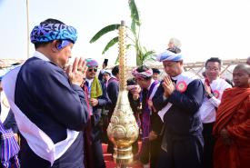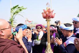 ယင်းနောက် တောင်ကြီးမြို့ မူလမင်းကွန်းကျောင်းတိုက် ဦးစီးပဓာန နာယက နိုင်ငံတော် သြဝါဒါစရိယ၊ အဂ္ဂမဟာပဏ္ဍိတ ဘဒ္ဒန္တပညာသီရိဆရာတော်ထံ ရေစက်ညွှန်း တရားနာယူ၍ အမျှပေးဝေကြပြီး ဗိုလ်ပန္တကုန်းတော် မဟာဝံသဗုဒ္ဓဂယာစေတီ စိန်ဖူးတော်နှင့် ရွှေထီးတော်များကို ဆရာတော်များ၊ အလှူဒါယကာများ၊ ဥပါသကာများထံ ပြန်လည်အပ်နှံပြီး နိုင်ငံတော် စီမံအုပ်ချုပ်ရေးကောင်စီအဖွဲ့ဝင် ဦးခွန်စံလွင်၊ ရှမ်းပြည်နယ်ဝန်ကြီးချုပ် ဦးအောင်ဇော်အေး၊ PNO အထူးဒေသ(၆) အဖွဲ့ဥက္ကဋ္ဌ ဦးပီတာထွန်းနိုင်တို့က စိန်ဖူးတော်တို့ကို ပင့်ဆောင်၍ လည်းကောင်း၊ ကြာကလပ်နှင့်ပန်းလယ်တိုင်ကို အရှေ့ပိုင်းတိုင်း စစ်ဌာနချုပ် ဒုတိယတိုင်းမှူး၊ PNO အထူးဒေသ(၆) စစ်ကော်မတီ အတွင်းရေးမှူး၊ PNO ပါတီ အတွင်းရေးမှူးချုပ်နှင့် တွဲဖက်အတွင်းရေးမှူးတို့က ပင့်ဆောင်၍ လည်းကောင်း၊ ဌက်ပျောဖူးကို ပြည်နယ်တရားလွတ်တော် တရားသူကြီးချုပ်၊ ပြည်နယ်ဝန်ကြီးများ၊ ပြည်နယ်ဥပဒေချုပ်၊ ပြည်နယ်အစိုးရအဖွဲ့ အတွင်းရေးမှူး ထီးတော်အလှူရှင်တို့က ပင့်ဆောင်၍ လည်းကောင်း၊ အရံစေတီကို ပအိုဝ်းကိုယ်ပိုင်အုပ်ချုပ်ခွင့်ရဒေသ စီမံအုပ်ချုပ်ရေးအဖွဲ့ဥက္ကဋ္ဌနှင့် အဖွဲ့ဝင်များ၊ အလှူဒါယကာများ၊ ဥပါသကာများက ပင့်ဆောင်၍ မဟာဝံသ ဗုဒ္ဓဂယာစေတီကို လက်ယာရစ် တစ်ပတ် ပင့်ဆောင်ပူဇော်ကြပြီး မင်္ဂလာကျရောက်ချိန်တွင် ရွှေထီးတော်ဘုံဆင့်များ၊ စိန်ဖူးတော်တို့ကို တင်လှူပူဇော်ပေးသည်။