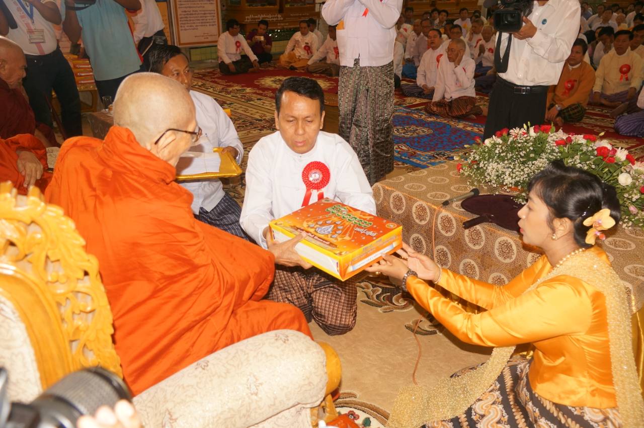 ဆက်လက်၍ဆရာတော်အရှင်သူမြတ်များက အန္တရယ်ကင်းပရိတ်တရားတော်များ ရွတ်ပွားချီးမြှင့်ပေးကြပြီး ရန်ကုန်တိုင်းအစိုးရအဖွဲ့ဝန်ကြီးချုပ်ဦးဖြိုးမင်းသိန်းက ရွှေသင်္ကန်းကပ်လှူပူဇော်ခြင်း ဘက်စုံမွမ်းမံ ဆောင်ရွက်ခြင်းနှင့် ပတ်သက်၍ တင်ပြလျှောက်ထားသည်။