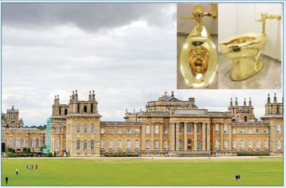 ဗြိတိန်နိုင်ငံ၏ အခမ်းနားဆုံးသော နန်းတော်များအနက်တစ်ခုဖြစ်သည့် Blenheim နန်းတော်ရှိ ရွှေစင်စစ်ဖြင့်ပြုလုပ်ထားသော အိမ်သာတစ်လုံး ပျောက်ဆုံးသွားခဲ့သဖြင့် ဒေသ္တရရဲအရာရှိများက စုံစမ်းစစ်ဆေးလျက်ရှိကြောင်း သိရသည်။