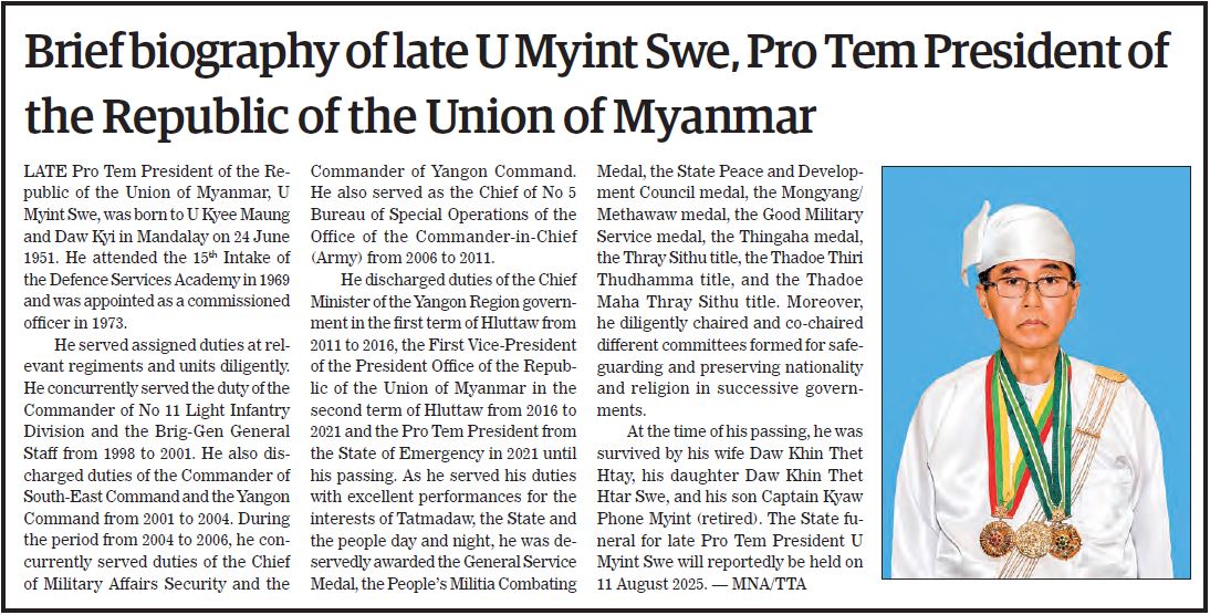 Brief biography of late U Myint Swe, Pro Tem President of the Republic of the Union of Myanmar