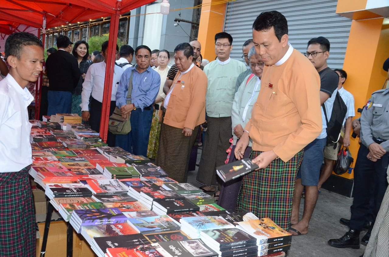 ရန်ကုန်တိုင်းဒေသကြီး ဝန်ကြီးချုပ် ဦးဖြိုးမင်းသိန်းမှ အမှာစကားပြောကြားရာ၌ ယနေ့ပြောင်းလဲလာပြီးသော ခေတ်ကာလအခြေအနေပေါ် မူတည်ပြီး မြန်မာနိုင်ငံ သတင်းစာဆရာအသင်း၏ ကြိုးပမ်းအားထုတ်မှုတွေကို ကျွန်တော်တို့အနေနှင့် ကျေးဇူးတင်ရှိပါကြောင်း၊ နောင်အနာဂတ် စာပေမျိုးဆက်သစ် ညီငယ်မောင်မယ်များကိုလည်း စာအုပ်စာပေများနှင့်နီးစပ်ဖို့ ကျွန်တော်တို့တတွေ အစဉ်တစိုက် ကြိုးစားနေကြရမှာဖြစ်ကြောင်း၊ ခုလိုဖွင့်လှစ်လိုက်တဲ့ ညဈေးစာအုပ်အရောင်း ဈေးတန်းကဲ့သို့ အမြဲတမ်း စာအုပ်စာပေ ဈေးတန်းတွေ ဖွင့်လှစ်နိုင်ဖို့ တိုင်းဒေသကြီးကလည်း ကြိုးစားနေပါကြောင်း၊ ရန်ကုန်ကမ်းနားလမ်းမှာ ဖွင့်ထားတဲ့ ညဈေးတန်းကြီးကိုလည်း အဆင့်မြှင့်တင်သွားဖို့ ရည်ရွယ်ထားပါကြောင်း၊ မည်သည့်အရာကိုမဆို စွန့်လွှတ်အနစ်နာခံ လုပ်ကိုင်နေကြတဲ့ ပြည်သူအပေါင်းကိုလည်း အထူးကျေးဇူးတင်ရှိပါကြောင်း ပြောကြားသည်။