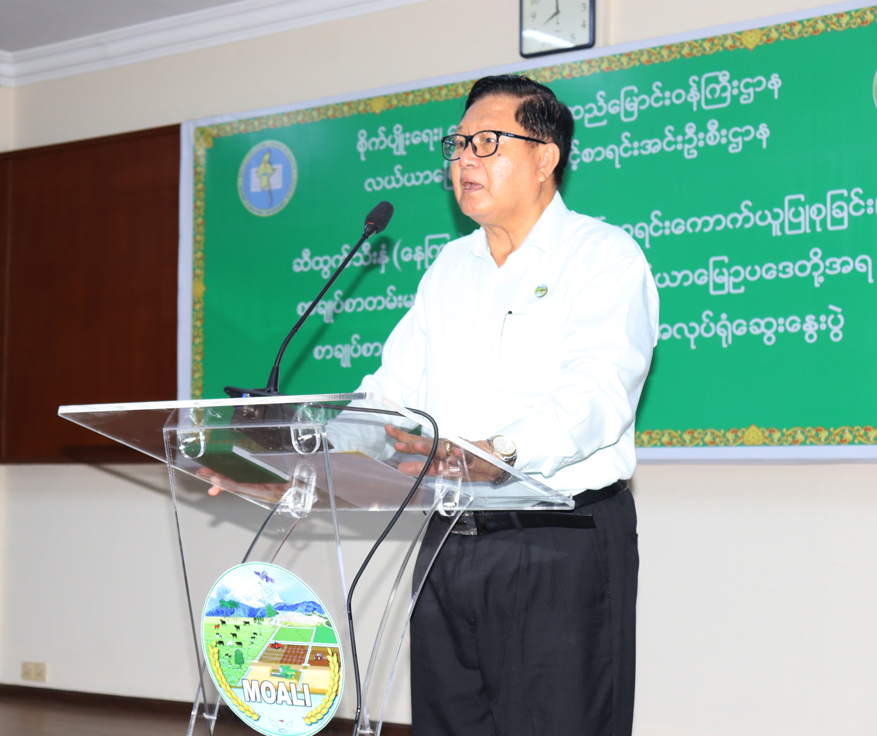 ထို့နောက် လယ်ယာမြေစီမံခန့်ခွဲရေးနှင့် စာရင်းအင်းဦးစီးဌာန ညွန်ကြားရေးမှူးချုပ် ဦးသက်နိုင်ဦး က အလုပ်ရုံဆွေးနွေးပွဲနှင့်ပက်သက်၍ အမှာစကားပြောကြားသည်။