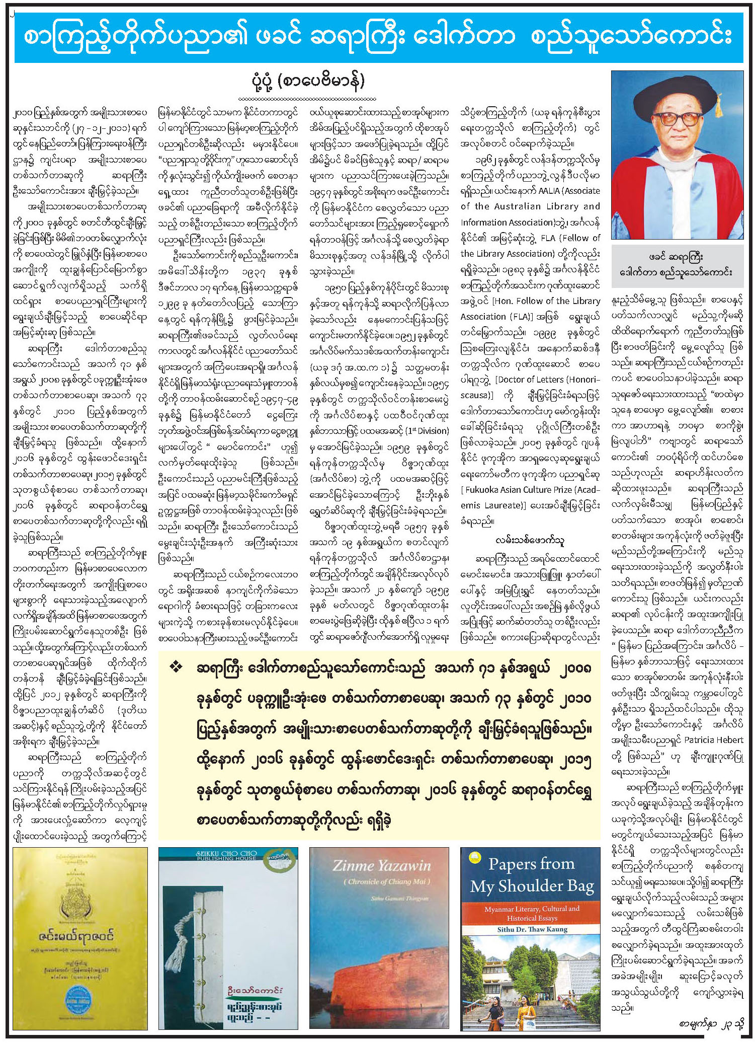 စာကြည့်တိုက်ပညာ၏ ဖခင် ဆရာကြီး ဒေါက်တာ စည်သူသော်ကောင်း