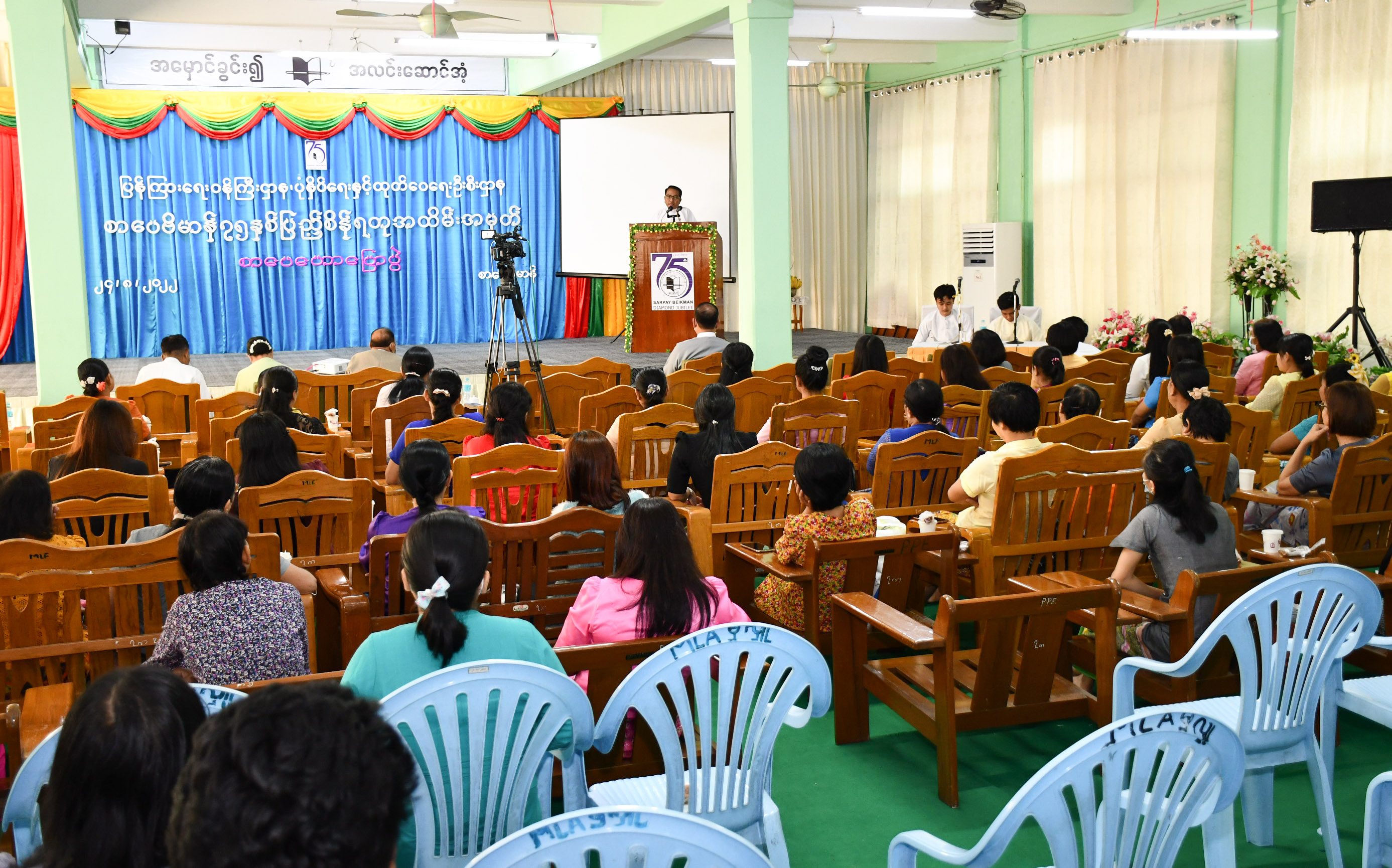 ရှေးဦးစွာပုံနှိပ်ရေးနှင့် ထုတ်ဝေရေးဦးစီးဌာန၊ စာတည်းမှူးချုပ်ဦးတိုးကျော်က စာပေဗိမာန် (၇၅)နှစ်ပြည့် စိန်ရတုအခမ်းအနား ကျင်းပရန်အတွက် ဆောင်ရွက်နေမှု များနှင့် စာပေဟောပြောပွဲ ကျင်းပရခြင်း၏ ရည်ရွယ်ချက်ကို ရှင်းလင်းပြောကြားသည်။
