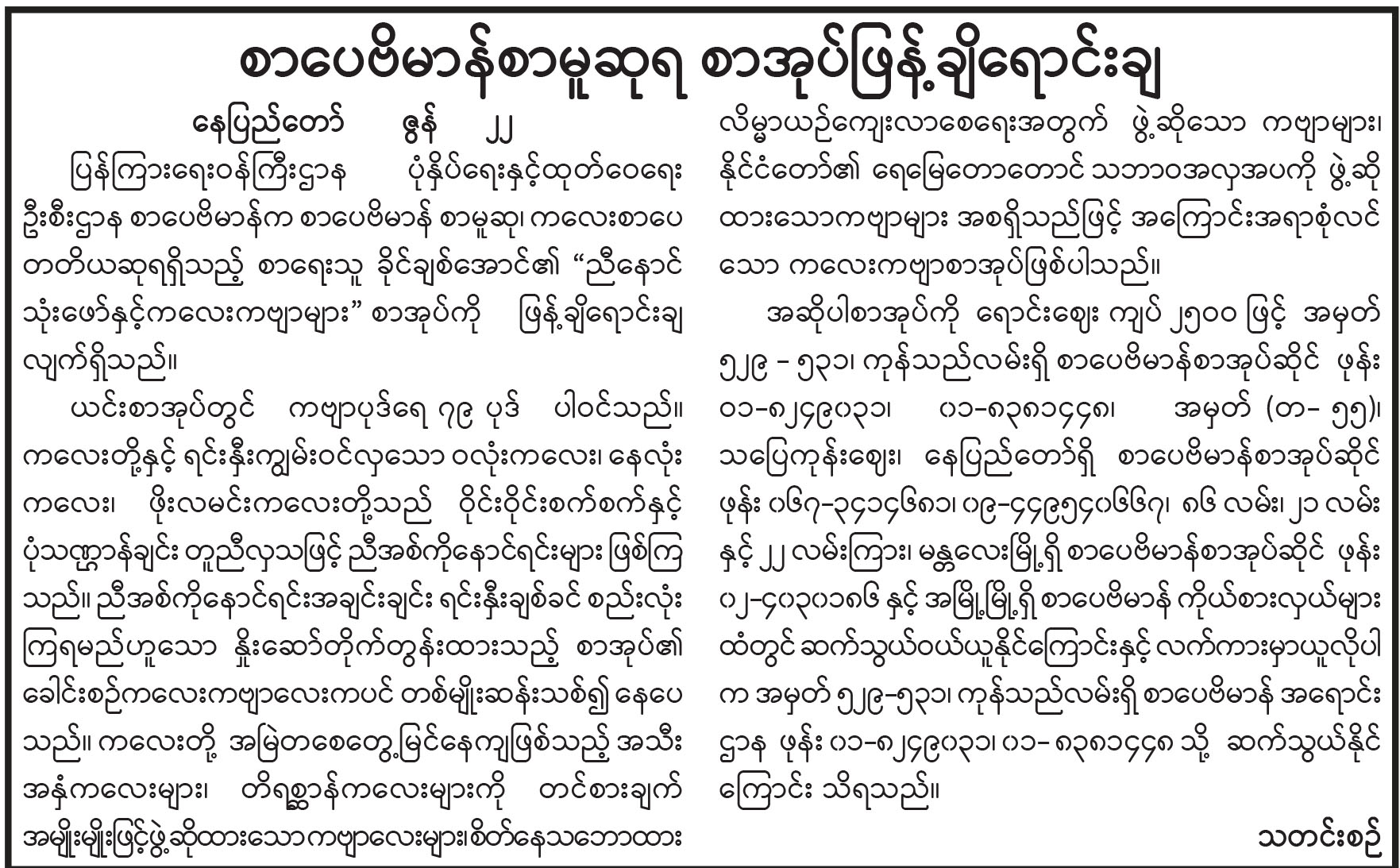 စာပေဗိမာန်စာမူဆုရ စာအုပ်ဖြန့်ချိရောင်းချ