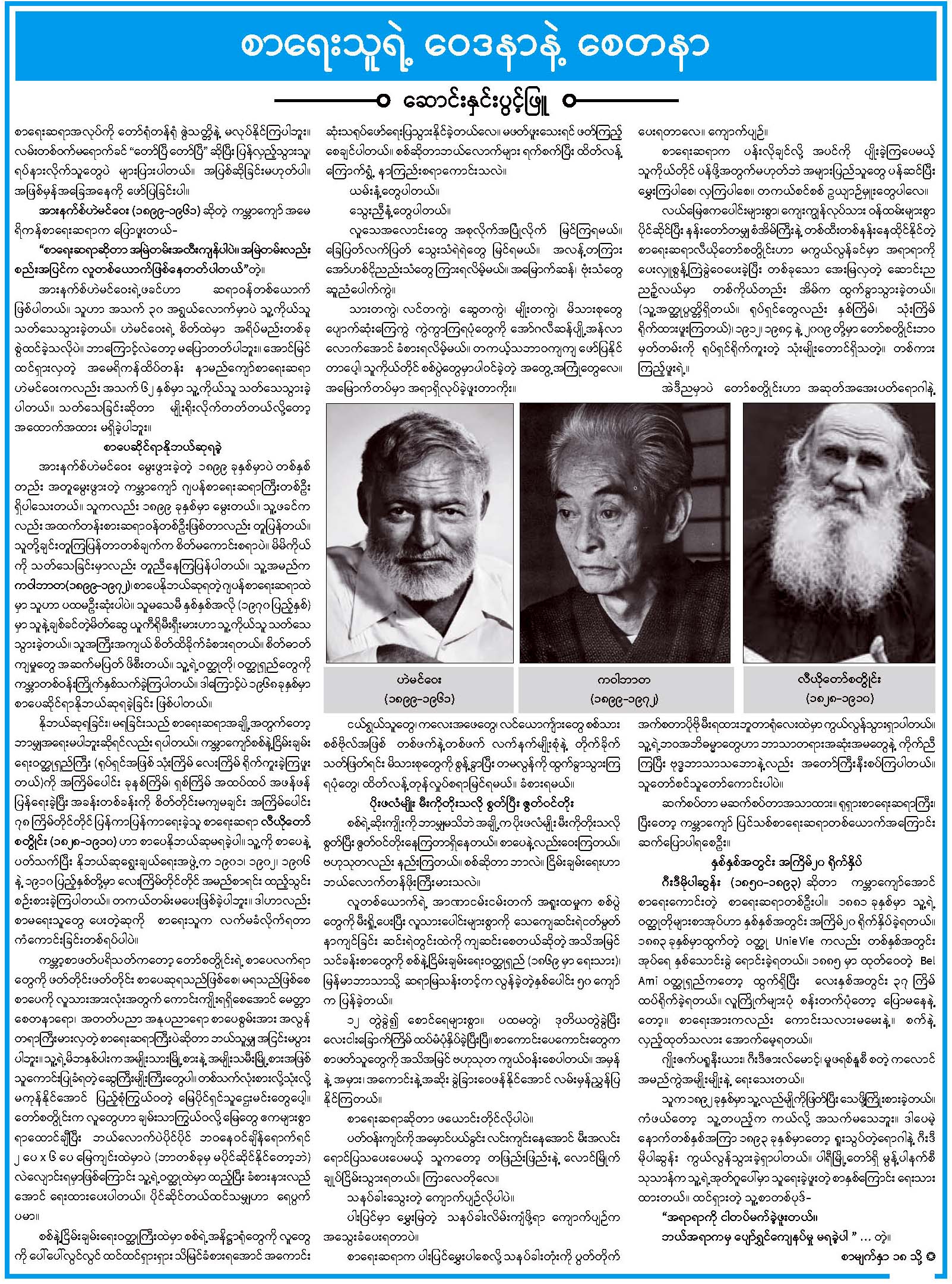 စာရေးသူရဲ့ ဝေဒနာနဲ့ စေတနာ