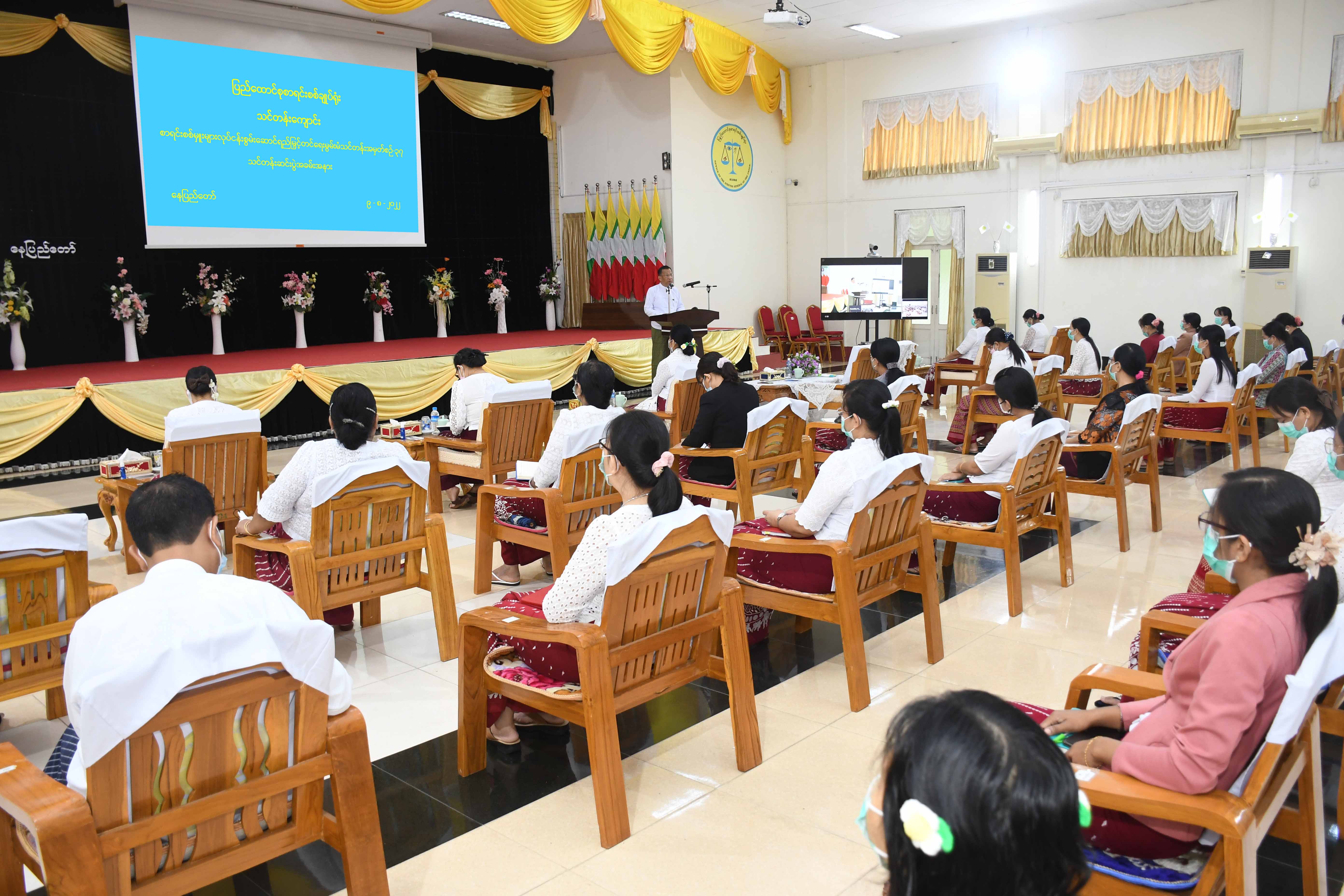 သင်တန်းသားများသည် သင်တန်းမှ သင်ကြားပို့ချမှုများဖြင့် ရပ်တန့်မနေဘဲ ပညာရပ်ဆိုင်ရာ အသိပညာဗဟုသုတများ ပြည့်ဝစေရန် ကိုယ်တိုင်လေ့လာ သင်ယူမှု များဖြင့် စဉ်ဆက်မပြတ်လေ့လာသင်ယူ၍ နိုင်ငံတော်အပေါ်သစ္စာစောင့်သိပြီး မိမိ၏ ဌာနတာဝန်၊ နိုင်ငံ့တာဝန်များကို ကျေပွန်စွာထမ်းဆောင်နိုင်သည့် ဝန်ထမ်းကောင်း များဖြစ်အောင် ကြိုးစားကြစေလိုပါကြောင်း မှာကြားသည်။