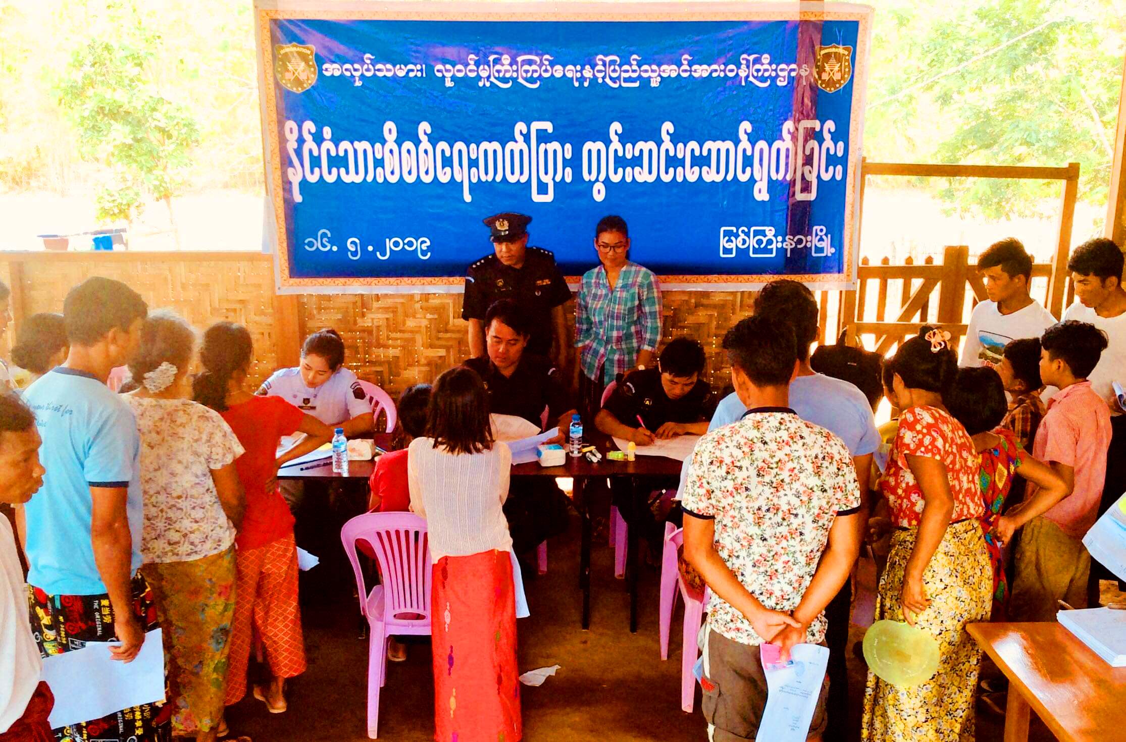ကချင်ပြည်နယ်၊ မြစ်ကြီးနားခရိုင်၊ မြစ်ကြီးနားမြို့နယ်လူဝင်မှုကြီးကြပ်ရေးနှင့် ပြည်သူ့အင်အားဆိုင်ရာဦးစီးမှူးရုံးမှ မြို့နယ်ဦးစီးမှူး ဦးဇော်ရာ ဦးဆောင်သော ဝန်ထမ်းများအဖွဲ့သည် မေ ၁၆ ရက်၊ နံနက် ၁၀ နာရီက မြစ်ကြီးနားမြို့နယ် နောင်နန်းကျေးရွာအုပ်စု၊ နောင်နန်းကျေးရွာရှိ ဂျော်မဆတ်နှစ်ခြင်း စစ်ဘေးရှောင်စခန်းသို့ သွားရောက်ပြီး မြို့နယ်အတွင်းရှိ စစ်ဘေးရှောင်စခန်းများမှ နေရပ်စွန့်ခွာလာသော ပြည်သူ ကျား/မ ၂၃၅ ဦး အား နိုင်ငံသားစိစစ်ရေးကတ်ပြားများ ကွင်းဆင်းပြုလုပ်ဆောင်ရွက်ပေးခဲ့ကြောင်း မြစ်ကြီးနားမြို့နယ် လူဝင်မှုကြီးကြပ်ရေးနှင့် ပြည်သူ့အင်အားဆိုင်ရာဦးစီးမှူးရုံးမှ မြို့နယ်ဦးစီးမှူး ဦးဇော်ရာထံမှ သိရသည်။