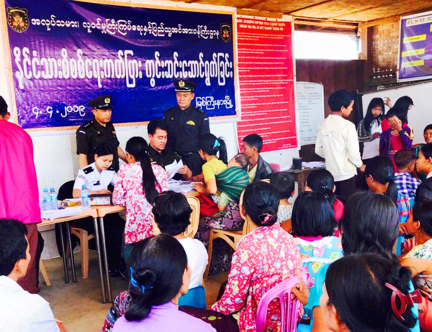 ကချင်ပြည်နယ် ၊ မြစ်ကြီးနားခရိုင် ၊ မြစ်ကြီးနားမြို့နယ် လူဝင်မှုကြီးကြပ်ရေးနှင့် ပြည်သူ့အင်အားဆိုင်ရာ ဦးစီးမှူးရုံးမှ မြို့နယ်ဦးစီးမှူး ဦးဇော်ရာနှင့် ဝန်ထမ်းများအဖွဲ့သည် ဧပြီ ၄ ရက် ၊ နံနက် ၉ နာရီခွဲက မြစ်ကြီးနားမြို့နယ် ပလန ကျေးရွာရှိ စိန့်ဂျိုးဇက် စစ်ဘေးရှောင်စခန်းသို့ သွားရောက်ပြီး စစ်ဘေးရှောင်ပြည်သူများအား နိုင်ငံသားစိစစ်ရေးကတ်ပြားများ နေ့ချင်းပြီး ကွင်းဆင်းပြုလုပ် ဆောင်ရွက်ပေးခဲ့ကြောင်း သိရသည်။