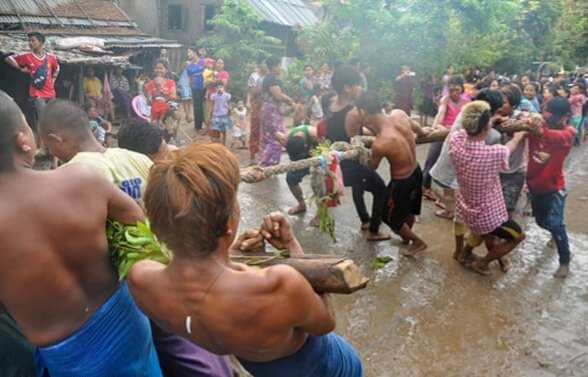 မိုးရွာသွန်းစေရန်အတွက် ကျင်းပပြုလုပ်သည့် လွန်ဆွဲပွဲကို ဧပြီ ၂၉ ရက်မှစတင်၍ သုံးရက်တိုင် ကျင်းပသွားမည်ဖြစ်ပြီး လွန်ဆွဲပွဲတွင် အမျိုးသမီးတစ်ဖက်၊ အမျိုးသားတစ်ဖက် ယှဉ်ပြိုင်ခဲ့ကြကြောင်း သိရသည်။