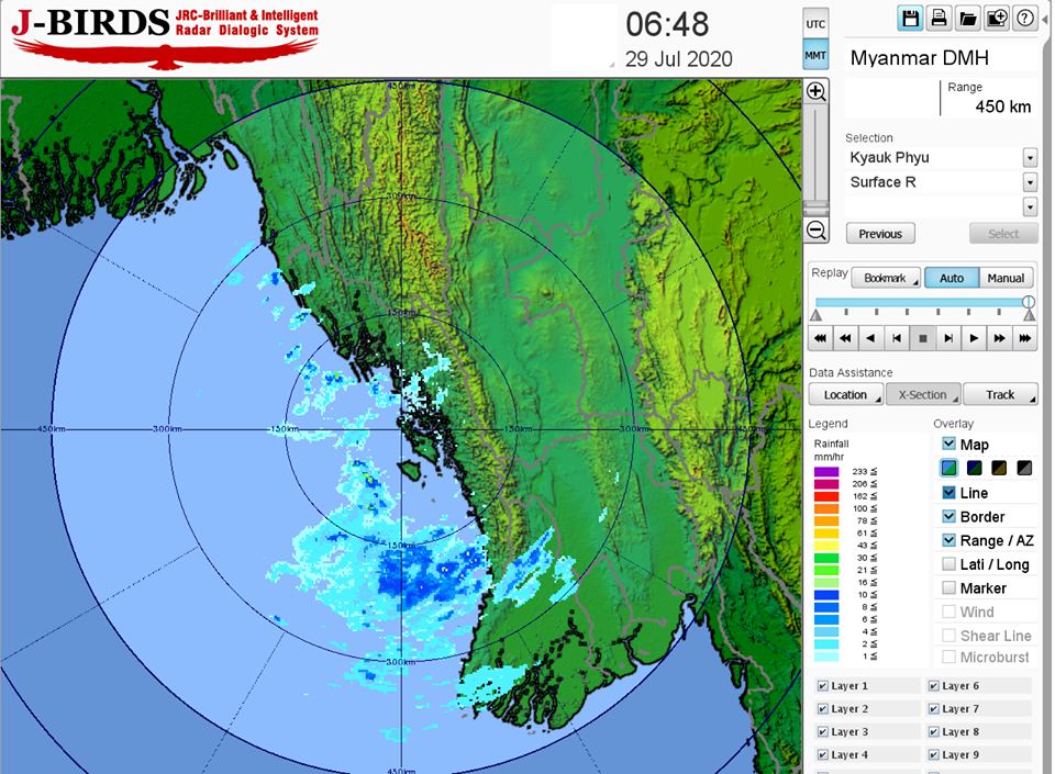ကပ္ပလီပင်လယ်ပြင်နှင့် ဘင်္ဂလားပင်လယ်အော်တောင်ပိုင်းတို့တွင် မုတ်သုံလေ အားအသင့်အတင့် ရှိနေပြီး၊ ကျန်ဘင်္ဂလားပင်လယ်အော်တွင် မုတ်သုံလေ အားနည်းနေပါသည်။