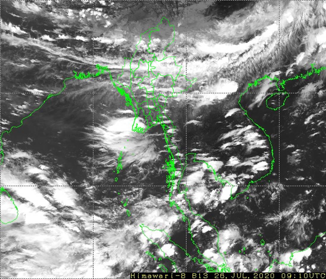 ဘင်္ဂလားပင်လယ်အော်အခြေအနေ။ ကပ္ပလီပင်လယ်ပြင်နှင့် ဘင်္ဂလားပင်လယ်အော်တောင်ပိုင်းတို့တွင် မုတ်သုံလေ အားအသင့်အတင့် ရှိနေပြီး၊ ကျန်ဘင်္ဂလားပင်လယ်အော်တွင် မုတ်သုံလေ အားနည်းနေပါသည်။