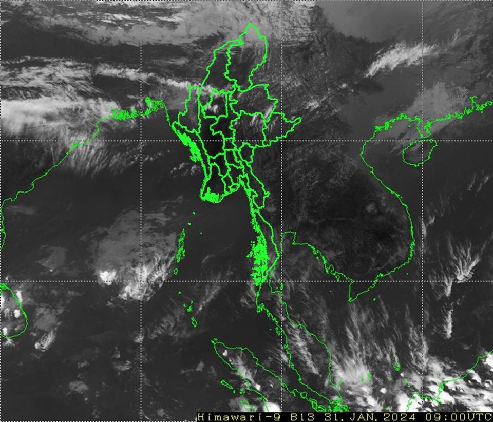 နောက်(၂)ရက်အတွက်ခန့်မှန်းချက်။ စစ်ကိုင်းတိုင်းဒေသကြီးအထက်ပိုင်း၊ ကချင်ပြည်နယ်နှင့် ချင်းပြည်နယ်တို့တွင် နေရာကွက်ကျားမှ နေရာကျဲကျဲ မိုးထစ်ချုန်းရွာမည်။
