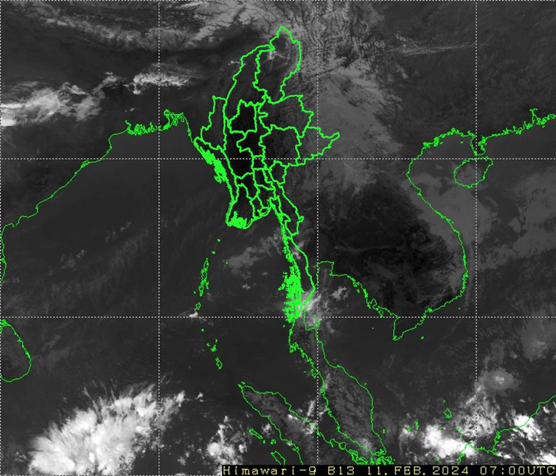 လွန်ခဲ့သော(၂၄)နာရီအတွင်းက ရန်ကုန်တိုင်းဒေသကြီးနှင့် တနင်္သာရီတိုင်းဒေသကြီးတို့တွင် နေရာကွက်ကျား မိုးထစ်ချုန်းရွာခဲ့ပါသည်။ နေပြည်တော်၊ မန္တလေးတိုင်းဒေသကြီး၊ မကွေးတိုင်းဒေသကြီး၊ ပဲခူးတိုင်းဒေသကြီး နှင့် ရခိုင်ပြည်နယ်တို့တွင် အများအားဖြင့် သာယာခဲ့ပြီး၊ ကျန်တိုင်းဒေသကြီးနှင့် ပြည်နယ်တို့တွင် တိမ်အသင့်အတင့် ဖြစ်ထွန်းခဲ့ပါသည်။ ညအပူချိန်များမှာ ပဲခူးတိုင်းဒေသကြီးနှင့မွန်ပြည်နယ်တို့တွင် ဖေဖော်ဝါရီလ၏ ပျမ်းမျှအပူချိန်တို့ထက် (၂)ဒီဂရီစင်တီဂရိတ်နှင့် နေပြည်တော်၊ ရှမ်းပြည်နယ် (တောင်ပိုင်းနှင့် အရှေ့ပိုင်း)နှင့် ကရင်ပြည်နယ်တို့တွင် ဖေဖော်ဝါရီလ၏ ပျမ်းမျှအပူချိန်တို့ထက် (၃)ဒီဂရီစင်တီဂရိတ်မှ (၄)ဒီဂရီစင်တီဂရိတ်အထိ ပိုခဲ့ကာ၊ ကျန်တိုင်းဒေသကြီးနှင့် ပြည်နယ်တို့တွင် ဖေဖော်ဝါရီလ၏ ပျမ်းမျှအပူချိန်ခန့်သာ ရှိခဲ့ပါသည်။