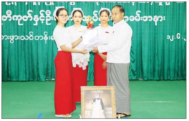 ဦးစွာ တိုင်းဒေသကြီးဝန်ကြီးချုပ်က အမှာစကား ပြောကြားပြီး တိုင်းဒေသကြီးဝန်ကြီးချုပ်နှင့် တိုင်းဒေသကြီးဝန်ကြီးများက၂၀၂၄-၂၀၂၅ ပညာသင်နှစ်၊ အတန်းတင်စာမေးပွဲတွင် ပထမ၊ ဒုတိယနှင့် ဆာတိယဆုရရှိကြသည့် ကျောင်းသူများကို ဂုဏ်ပြုချီးမြှင့်ငွေနှင့် ဆုလက်မှတ်များ ပေးအပ်ချီးမြှင့် ကြပြီး မုံရွာ-သူနာပြုနှင့် သားဖွားသင်တန်းကျောင်းအတွက် ငွေကျပ် ၁၀ သိန်းကို ကျောင်းအုပ် ဆရာမကြီးထံ ပေးအပ်သည်။