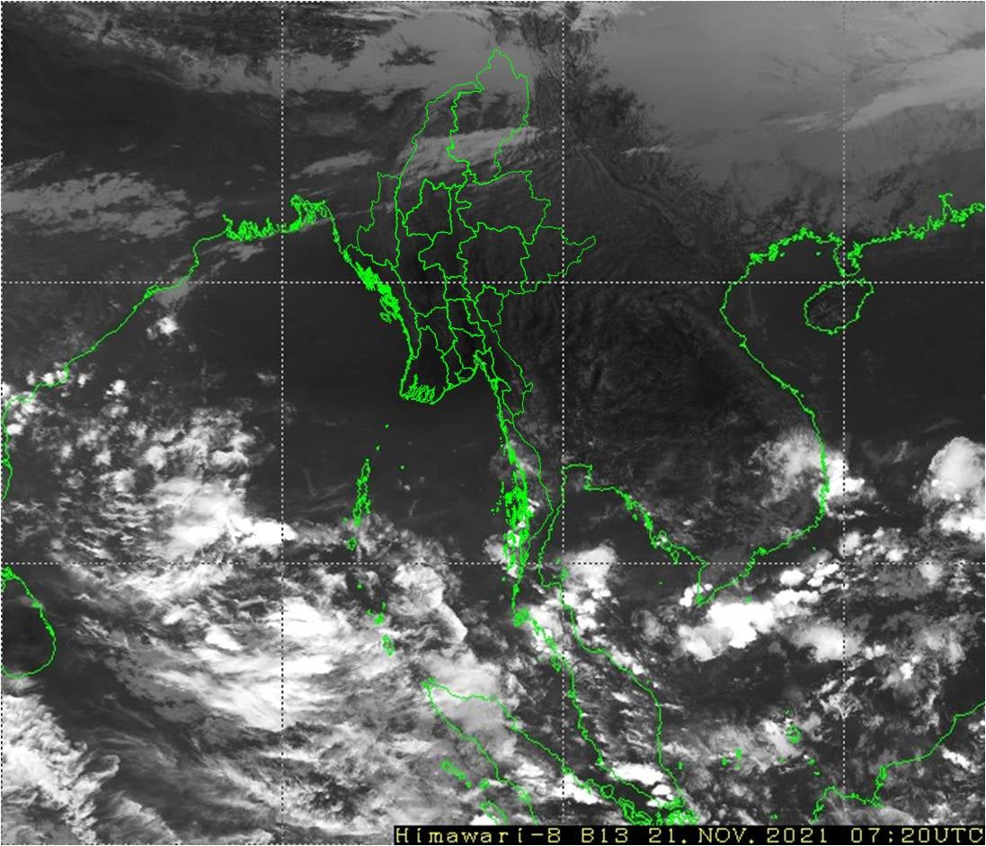 လွန်ခဲ့သော (၂၄) နာရီအတွင်းက နေပြည်တော်၊ ပဲခူးတိုင်းဒေသကြီး၊ ရှမ်းပြည်နယ် (အရှေ့ပိုင်း)၊ ကယားပြည်နယ်နှင့် ကရင်ပြည်နယ်တို့တွင် အများအားဖြင့် သာယာခဲ့ပြီး၊ ကျန်တိုင်းဒေသကြီးနှင့် ပြည်နယ်တို့တွင် တိမ်အသင့်အတင့် ဖြစ်ထွန်းခဲ့သည်။ ညအပူချိန်များမှာ ကယားပြည်နယ်တွင် နိုဝင်ဘာလ၏ ပျမ်းမျှအပူချိန်အောက် (၃) ဒီဂရီစင်တီဂရိတ် လျော့နည်းခဲ့ပြီး၊ နေပြည်တော်၊ စစ်ကိုင်းတိုင်းဒေသကြီး အောက်ပိုင်း၊ မန္တလေးတိုင်းဒေသကြီး၊ မကွေးတိုင်းဒေသကြီး၊ ဧရာဝတီတိုင်းဒေသကြီးနှင့် မွန်ပြည်နယ်တို့တွင် နိုဝင်ဘာလ၏ ပျမ်းမျှအပူချိန်တို့ထက် (၂) ဒီဂရီစင်တီဂရိတ်နှင့် ကရင်ပြည်နယ်တွင် နိုဝင်ဘာလ၏ ပျမ်းမျှအပူချိန်ထက် (၃) ဒီဂရီစင်တီဂရိတ် ပိုခဲ့ကာ၊ ကျန်တိုင်းဒေသကြီးနှင့် ပြည်နယ်တို့တွင် နိုဝင်ဘာလ၏ ပျမ်းမျှအပူချိန်ခန့်သာ ရှိခဲ့သည်။ ထူးခြားသည့် ညအပူချိန်များမှာ ဟားခါးမြို့တွင် (၄) ဒီဂရီစင်တီဂရိတ်၊ ပင်လောင်းမြို့တွင် (၈) ဒီဂရီစင်တီဂရိတ်နှင့် နမ့်စန်မြို့၊ ဟဲဟိုးမြို့နှင့် ပြင်ဦးလွင်မြို့တို့တွင် (၉) ဒီဂရီစင်တီဂရိတ်စီတို့ ဖြစ်ကြသည်။