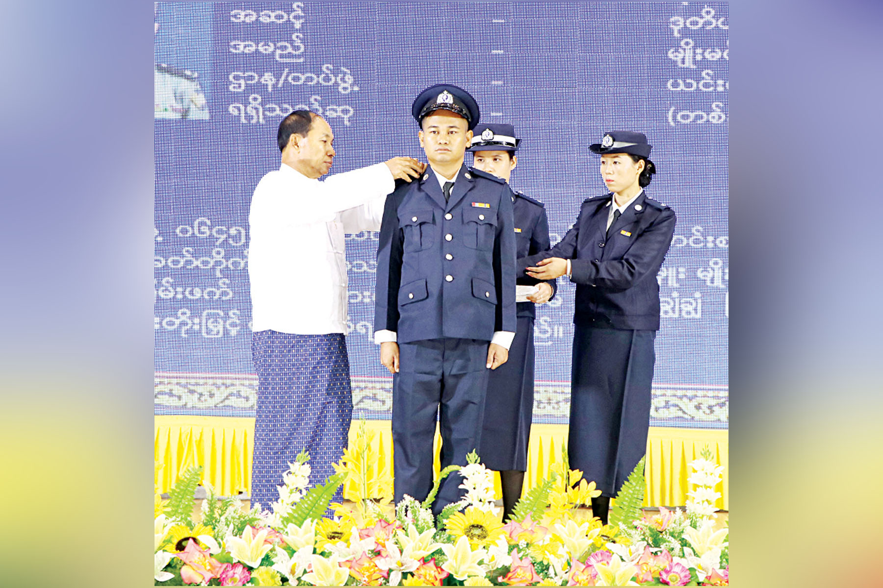 ထို့နောက် တိုင်းဒေသကြီး ရဲတပ်ဖွဲ့မှူးက မြန်မာနိုင်ငံရဲတပ်ဖွဲ့ ရဲချုပ်က ပေးပို့သည့် သဝဏ်လွှာကို ဖတ်ကြားသည်။