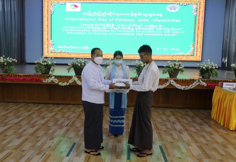 အခမ်းအနားတွင် တိုင်းဒေသကြီး ဝန်ကြီးချုပ်က အမှာစကားပြောကြားပြီး ၂၀၂၂-ခုနှစ်၊ အပြည်ပြည်ဆိုင်ရာ မသန်စွမ်းသူများနေ့ အထိမ်းအမှတ် Video Clip ပြသခြင်း၊ ရောင်ခြည်သစ်မျက်မမြင်ကျောင်းမှ မသန်စွမ်းများက တေးသီချင်းများ သီဆိုဖျော်ဖြေခြင်း၊ မသန်စွမ်း အားကစားပြိုင်ပွဲနှင့် သီချင်းပြိုင်ပွဲများတွင် ပထမ၊ ဒုတိယ၊ တတိယ၊ နှစ်သိမ့်ဆု ရရှိကြသူများကို ဆုတံဆိပ် နှင့်ဂုဏ်ပြုဆုငွေများ ပေးအပ်ချီးမြှင့်ခြင်းတို့ကို ဆောင်ရွက်ခဲ့ ကြပြီး တိုင်းဒေသကြီး ဝန်ကြီးချုပ်နှင့် တာဝန်ရှိသူများက မသန်စွမ်းများကို ရင်းရင်းနှီးနှီး လိုက်လံနှုတ်ဆက်ခဲ့ကြောင်း သိရသည်။