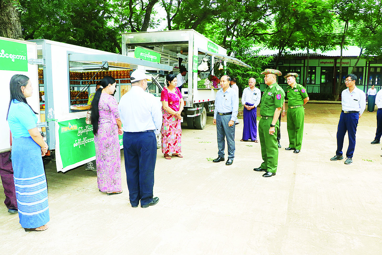 ထို့နောက် ဝန်ထမ်းများအား ဈေးနှုန်းသက်သာစွာဖြင့် စားသုံးဆီများ၊ ဆန်နှင့် ဟင်းသီးဟင်းရွက်များ ရောင်းချနေမှုကို ကြည့်ရှုအားပေးကြသည်။