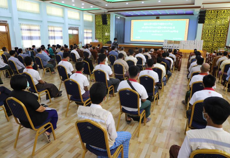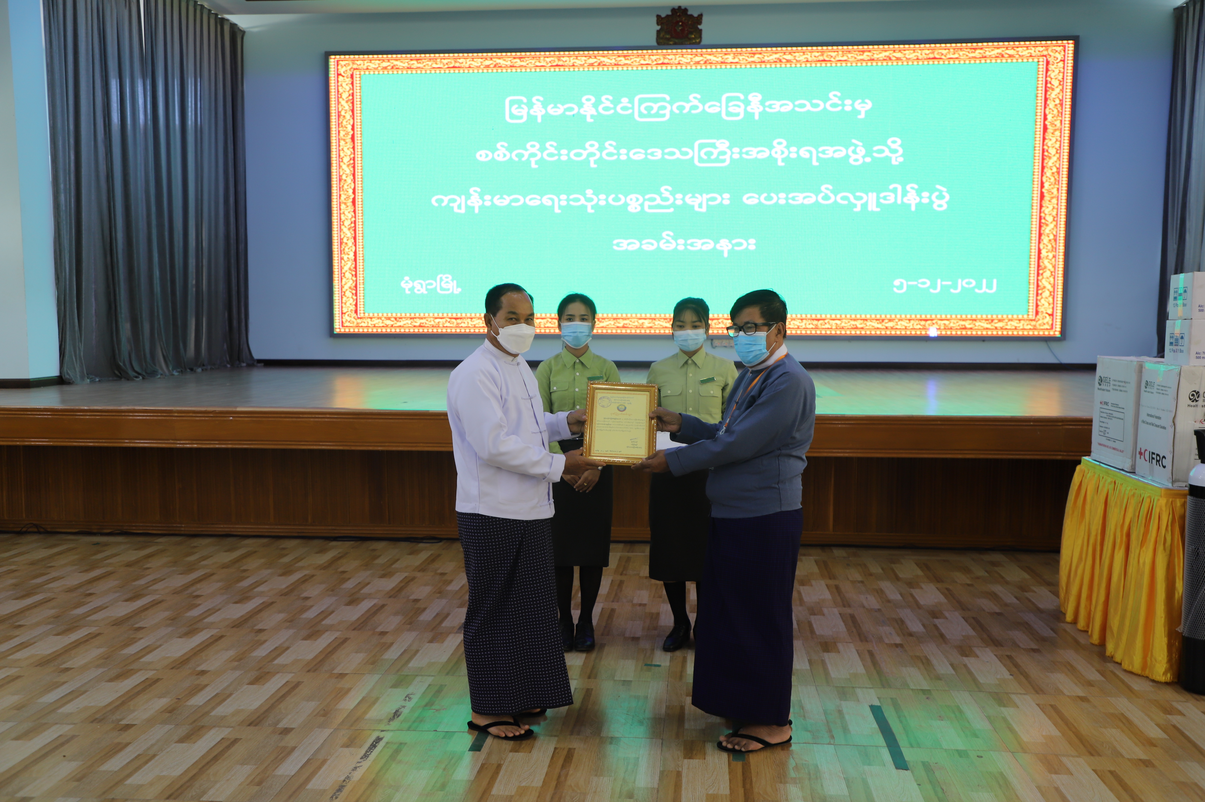 မြန်မာနိုင်ငံကြက်ခြေနီအသင်းမှ စစ်ကိုင်းတိုင်းဒေသကြီးအစိုးရအဖွဲ့သို့ ကျန်းမာရေးသုံး ပစ္စည်းများ ပေးအပ်လှူဒါန်းပွဲအခမ်းအနားကို ယနေ့နံနက်ပိုင်းတွင် တိုင်းဒေသကြီးအစိုးရအဖွဲ့ ရုံးဝန်းအတွင်းရှိ ချင်းတွင်းခန်းမ၌ ကျင်းပသည်။