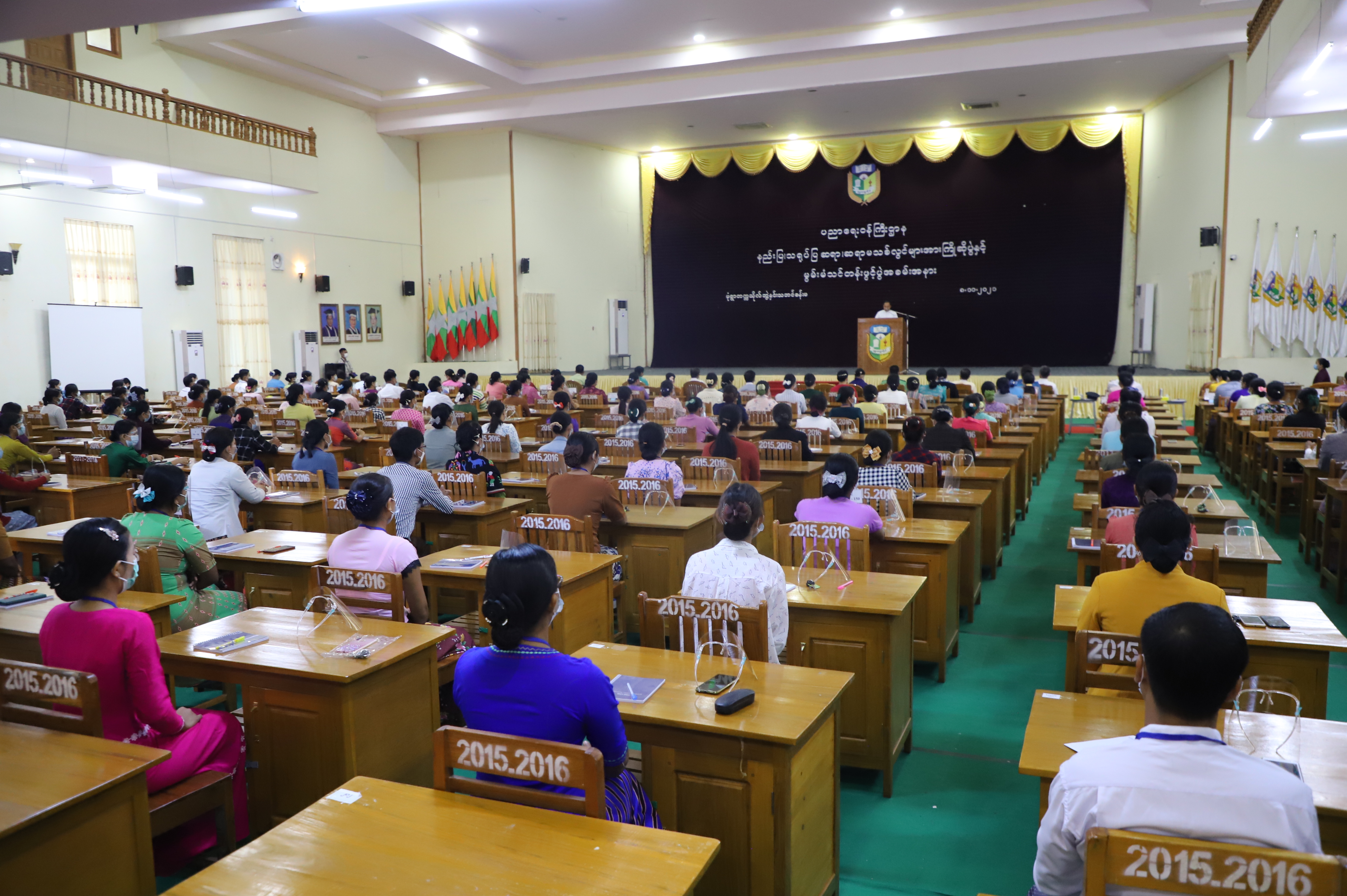 ရှေးဦးစွာ တိုင်းဒေသကြီး ဝန်ကြီးချုပ် ဦးမြတ်ကျော်က အမှာစကား ပြောကြားရာတွင် ယနေ့နိုင်ငံတော်တွင် ပြန်လည်တည်ဆောက်ရေး လုပ်ဆောင်မှုများအနက် ပညာရေးကဏ္ဍတွင် ဆရာ၊ ဆရာမများအားလုံး တက်ညီလက်ညီနှင့် ပူးပေါင်းဆောင်ရွက်ကြမှသာလျှင် ဘက်စုံဖွံ့ဖြိုးတိုးတက်သည့် နိုင်ငံတော်သစ်ကြီး တည်ဆောက်နိုင်မှာ ဖြစ်ပါကြောင်း၊ ဆရာ၊ ဆရာမတို့အနေဖြင့် အပြန်အလှန် ယုံကြည်နားလည်ခြင်းနှင့် ပူးပေါင်းဆောင်ရွက်ခြင်းဆိုသည့် နည်းစနစ်များကို သိမြင်ပြီး လက်တွေ့လုပ်ကိုင် ဆောင်ရွက်နိုင်ရန် အားထုတ်စေလိုပါကြောင်း၊ အဆင့်မြင့်ပညာကဏ္ဍတွင် သင်ကြားရေးတာဝန် ထမ်းဆောင်ကြမည့် ဆရာ၊ ဆရာမများဖြစ်လို့ နိုင်ငံ့ဝန်ထမ်းကောင်းများအဖြစ် စံနမူနာပြနေထိုင်ရင်း လက်တွေ့အသုံးချ သုတေသနများကို မိမိတို့နှင့်အတူ ကျောင်းသား၊ ကျောင်းသူများ ပြုလုပ်နိုင်ရန် လမ်းညွှန်ပေးခြင်း၊ ကျောင်းသားဗဟိုပြု သင်ကြားရေးစနစ်ကို ဦးတည်ဆောင်ရွက်နိုင်ခြင်း စတာတို့ကို အားထုတ်စေလိုပါကြောင်း၊ မိမိတို့အနေဖြင့် နိုင်ငံတော်စီမံအုပ်ချုပ်ရေးကောင်စီက ရည်မှန်း အကောင်အထည်ဖော် ဆောင်ရွက်လျက်ရှိတဲ့ ရှေ့လုပ်ငန်းစဉ် ၅ ရပ်နဲ့ ဦးတည်ချက် ၉ ရပ်ကို စေတနာအပြည့်အဝဖြင့် တာဝန်ကျေပွန်အောင် အကောင်အထည်ဖော် ဆောင်ရွက်နေပြီး အောင်မြင်အောင်လည်း အားလုံးနှင့်အတူ ပူးပေါင်း၍ ဆောင်ရွက်သွားမည်ဖြစ်ပါကြောင်း ပြောကြားခဲ့သည်။