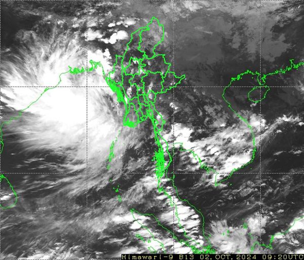 မိုးတိမ်တောင်ဖြစ်ပေါ်မှုအခြေအနေ။ စစ်ကိုင်းတိုင်းဒေသကြီအောက်ပိုင်း၊ မန္တလေးတိုင်းဒေသကြီး၊ မကွေးတိုင်း ဒေသကြီး၊ တနင်္သာရီတိုင်းဒေသကြီး၊ ချင်းပြည်နယ်၊ ရခိုင်ပြည်နယ်၊ ကယားပြည်နယ်၊ ကရင်ပြည်နယ်နှင့် မွန်ပြည်နယ်တို့တွင် မိုးတိမ်တောင်များ ဖြစ်ထွန်းလျက်ရှိပြီး၊ အဆိုပါ မိုးတိမ်တောင်များ ရွေ့လျားရာနေရာတစ်လျှောက်တွင် မိုးရွာသွန်းခြင်းနှင့်အတူ လေပြင်းတိုက်ခတ်ခြင်း၊ မိုးထစ်ချုန်းခြင်း၊ မိုးကြိုးပစ်ခြင်း၊ လျှပ်စီးလက်ခြင်းနှင့် မိုးသီးကြွေခြင်းစသည့် မိုးလေဝသဖြစ်စဉ်များ ဖြစ်ပေါ်နိုင်ပါသဖြင့့်် ကြိုတင်သတိပြုနိုင်ပါရန် အကြံပြုအပ်ပါသည်။