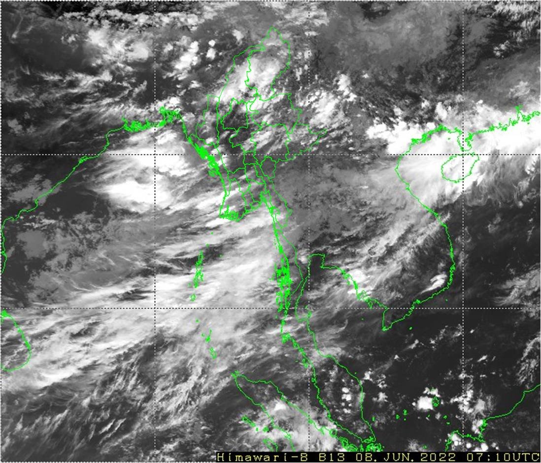 ယနေ့နံနက်(၀၉:၃၀)နာရီအချိန်ထိ မိုးလေဝသတိုင်းထွာချက်အကျဉ်းချုပ်မှာ လွန်ခဲ့သော(၂၄)နာရီ အတွင်းက စစ်ကိုင်းတိုင်းဒေသကြီးအောက်ပိုင်း၊ မကွေးတိုင်းဒေသကြီးနှင့် ကယားပြည်နယ်တို့တွင် နေရာကွက်ကျား၊ စစ်ကိုင်းတိုင်းဒေသကြီးအထက်ပိုင်း၊ မန္တလေးတိုင်းဒေသကြီးနှင့် ချင်းပြည်နယ်တို့တွင် နေရာကျဲကျဲ၊ ရှမ်းပြည်နယ်(မြောက်ပိုင်း)တွင် နေရာစိပ်စိပ်နှင့် ကျန်တိုင်းဒေသကြီးနှင့် ပြည်နယ်တို့တွင် နေရာအနှံ့အပြားမိုးထစ်ချုန်းရွာခဲ့ပြီး ရခိုင်ပြည်နယ်တွင် ဒေသအလိုက်နှင့် မွန်ပြည်နယ်တွင် နေရာကွက်၍ မိုးကြီးခဲ့သည်။