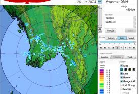မနက်ဖြန်နံနက်အထိခန့်မှန်းချက်။ နေပြည်တော်၊ မကွေးတိုင်းဒေသကြီးနှင့် ကယားပြည်နယ်တို့တွင် နေရာကျဲကျဲ၊ ကချင်ပြည်နယ်တွင် နေရာစိပ်စိပ်နှင့် ကျန်တိုင်းဒေသကြီးနှင့် ပြည်နယ်တို့တွင် နေရာအနှံ့အပြား မိုးထစ်ချုန်းရွာပြီး၊ မန္တလေးတိုင်းဒေသကြီးတွင် ဒေသအလိုက်နှင့် စစ်ကိုင်းတိုင်းဒေသကြီး၊ ရခိုင်ပြည်နယ်နှင့် မွန်ပြည်နယ်တို့တွင် နေရာကွက်၍ မိုးကြီးနိုင်ပါသည်။ ရွာရန်ရာနှုန်းပြည့် ဖြစ်ပါသည်။