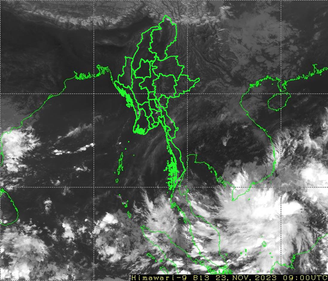 ဘင်္ဂလားပင်လယ်အော်အခြေအနေ။ ကပ္ပလီပင်လယ်ပြင်တောင်ပိုင်း၊ ဘင်္ဂလားပင်လယ်အော်တောင်ပိုင်းနှင့် အနောက်အလယ်ပိုင်းတို့တွင် တိမ်အသင့်အတင့်မှ တိမ်ထူထပ်နေပြီး၊ ကပ္ပလီပင်လယ်ပြင်မြောက်ပိုင်းနှင့် ကျန်ဘင်္ဂလားပင်လယ်အော်တို့တွင် တိမ်အနည်းငယ် ဖြစ်ထွန်းနေပါသည်။