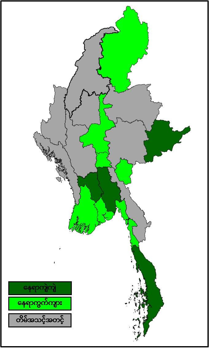 ယနေ့ ညနေအထိ ခန့်မှန်းချက်မှာ ပဲခူးတိုင်းဒေသကြီး၊ တနင်္သာရီတိုင်းဒေသကြီးနှင့် ရှမ်းပြည်နယ် (အရှေ့ပိုင်း)တို့တွင်‌ နေရာကျဲကျဲနှင့် နေပြည်တော်၊ မန္တလေးတိုင်းဒေသကြီး၊ ရန်ကုန်တိုင်းဒေသကြီး၊ ဧရာဝတီတိုင်းဒေသကြီး၊ ကချင်ပြည်နယ်၊ ကယားပြည်နယ်နှင့် မွန်ပြည်နယ်တို့တွင် နေရာကွက်ကျား မိုးထစ်ချုန်းရွာနိုင်သည်။ ရွာရန်ရာနှုန်း(၆၀) ဖြစ်ပါသည်။ ကျန်တိုင်းဒေသကြီးနှင့် ပြည်နယ်တို့တွင် တိမ်အသင့်အတင့် ဖြစ်ထွန်းမည်။