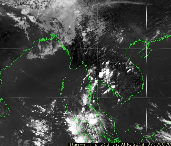 ၂၀၁၉ ခုနှစ်၊ ဧပြီလ (၇)ရက်နေ့ မွန်းလွဲ (၂:ဝ၀)နာရီအချိန် မိုးဇလမှ ထုတ်ပြန်ချက်အရ ဘင်္ဂလားပင်လယ်အော်အလယ်ပိုင်းတွင် တိမ်အနည်းငယ် ဖြစ်ထွန်းနေပြီး၊ ကပ္ပလီပင်လယ်ပြင်နှင့် ကျန်ဘင်္ဂလားပင်လယ်အော်တို့တွင် တိမ်အသင့်အတင့် ဖြစ်ထွန်းနေပါသည်။