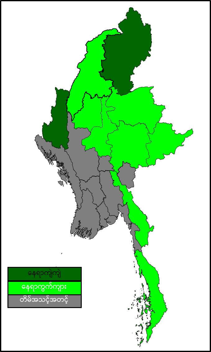မနက်ဖြန်နံနက်အထိခန့်မှန်းချက်။ ကချင်ပြည်နယ်နှင့် ချင်းပြည်နယ်တို့တွင် နေရာကျဲကျဲနှင့် စစ်ကိုင်းတိုင်းဒေသကြီး၊ မန္တလေးတိုင်းဒေသကြီး၊ တနင်္သာရီတိုင်းဒေသကြီး၊ ရှမ်းပြည်နယ်နှင့် ကရင်ပြည်နယ်တို့တွင် နေရာကွက်ကျား မိုးထစ်ချုန်းရွာမည်။ ရွာရန်ရာနှုန်း ၈၀ ဖြစ်ပါသည်။ ကျန်တိုင်းဒေသကြီးနှင့် ပြည်နယ်တို့တွင် တိမ်အသင့်အတင့် ဖြစ်ထွန်းမည်။
