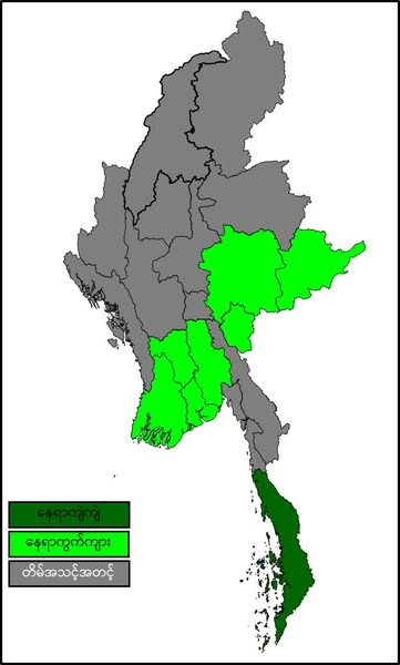 မနက်ဖြန်နံနက်အထိခန့်မှန်းချက်။ တနင်္သာရီတိုင်းဒေသကြီးတွင် နေရာကျဲကျဲနှင့် ပဲခူးတိုင်းဒေသကြီး၊ ရန်ကုန်တိုင်းဒေသကြီး၊ ဧရာဝတီတိုင်းဒေသကြီး၊ ရှမ်းပြည်နယ် (တောင်ပိုင်းနှင့် အရှေ့ပိုင်း)နှင့် ကယားပြည်နယ်တို့တွင် နေရာကွက်ကျား မိုးရွာမည်။ ရွာရန်ရာနှုန်း ၈၀ ဖြစ်ပါသည်။ ကျန်တိုင်းဒေသကြီးနှင့် ပြည်နယ်တို့တွင် တိမ်အသင့်အတင့် ဖြစ်ထွန်းမည်။