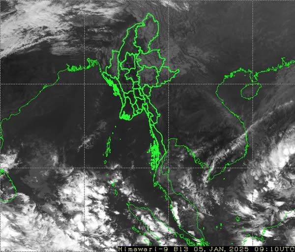 ဘင်္ဂလားပင်လယ်အော်အခြေအနေ။ ကပ္ပလီပင်လယ်ပြင်တောင်ပိုင်းနှင့် ဘင်္ဂလားပင်လယ်အော်တောင်ပိုင်းတို့တွင် တိမ်အသင့်အတင့်မှ တိမ်ထူထပ်နေပြီး၊ ကပ္ပလီပင်လယ်ပြင်မြောက်ပိုင်းနှင့် ကျန်ဘင်္ဂလားပင်လယ်အော်တို့တွင် တိမ်အနည်းငယ် ဖြစ်ထွန်းနေပါသည်။