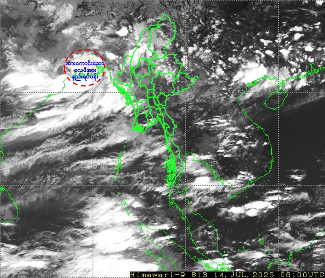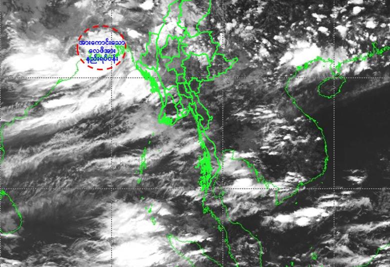 ထူးခြားသည့်အခြေအနေ။ ယနေ့မြန်မာစံတော်ချိန် ၁၂:၃၀ နာရီအချိန် တိုင်းထွာချက်များအရ ဘင်္ဂလားဒေ့ရှ်နိုင်ငံ၊ အနောက်တောင်ပိုင်းနှင့် ယင်းနှင့်ဆက်စပ်လျက်ရှိသော အိန္ဒိယနိုင်ငံ၊ အနောက်ဘင်္ဂလားပြည်နယ်တို့တွင် ဖြစ်ပေါ်နေသော အားကောင်းသောလေဖိအားနည်းရပ်ဝန်း (Well Marked Low Pressure Area) သည် ဆက်လက်တည်ရှိနေပါသည်။ အဆိုပါ အားကောင်းသောလေဖိအားနည်းရပ်ဝန်းသည် အနောက်မြောက်ဘက်သို့ ရွေ့လျားနိုင်ပြီး၊ နောက် ၂၄ နာရီအတွင်း ကုန်းတွင်းမုန်တိုင်းငယ် (Land Depression) အဖြစ်သို့ ရောက်ရှိနိုင်သည်ဟု ခန့်မှန်းရပါသည်။