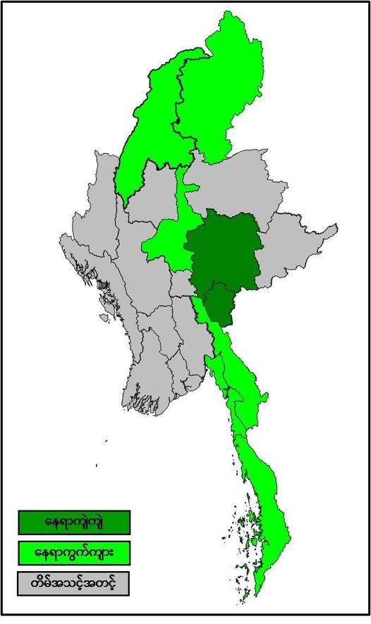 မနက်ဖြန်နံနက်အထိခန့်မှန်းချက်မှာ ရှမ်းပြည်နယ်(တောင်ပိုင်း)နှင့် ကယားပြည်နယ်တို့တွင် နေရာကျဲကျဲနှင့် စစ်ကိုင်းတိုင်းဒေသကြီးအထက်ပိုင်း၊ မန္တလေးတိုင်းဒေသကြီး၊ တနင်္သာရီတိုင်းဒေသကြီး၊ ကချင်ပြည်နယ်၊ ကရင်ပြည်နယ်နှင့် မွန်ပြည်နယ်တို့တွင် နေရာကွက်ကျား မိုးထစ်ချုန်းရွာမည်။ ရွာရန်ရာနှုန်း(၈၀) ဖြစ်သည်။ ကျန်တိုင်းဒေသကြီးနှင့် ပြည်နယ်တို့တွင် တိမ်အသင့်အတင့် ဖြစ်ထွန်းမည်။