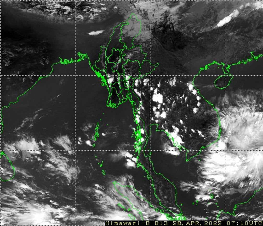 ဘင်္ဂလားပင်လယ်အော်အ‌ခြေအနေမှာ ကပ္ပလီပင်လယ်ပြင်နှင့် ဘင်္ဂလားပင်လယ်အော်တောင်ပိုင်း တို့တွင် တိမ်အသင့်အတင့် ဖြစ်ထွန်းနေပြီး ကျန်ဘင်္ဂလားပင်လယ်အော်တွင် တိမ်အနည်းငယ် ဖြစ်ထွန်းနေသည်။